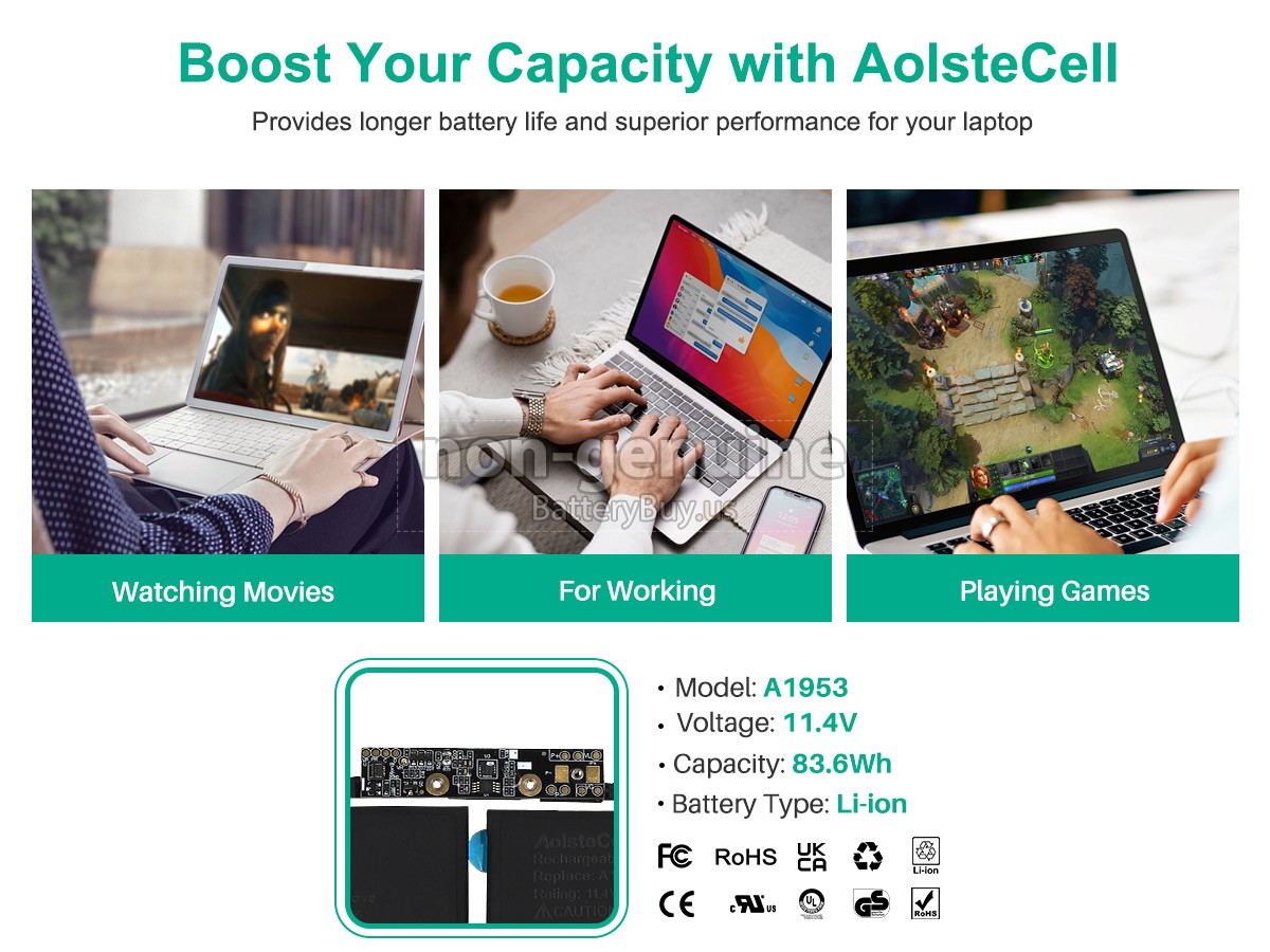 With first-class quality assurance, the battery for Apple MacBook Pro Core I9 2.9G 15 inch TOUCH/2018 provides protections of voltage, short circuit, charging time, ESD, and so on. Each Apple MacBook Pro Core I9 2.9G 15 inch TOUCH/2018 laptop battery has passed a series of safety certifications, such as CE, UL, ROHS, ISO9001/9002. It will be rigorously tested by our technicians before being shipped to your hands. We will try our best to select a high-quality Apple MacBook Pro Core I9 2.9G 15 inch TOUCH/2018 battery for you.