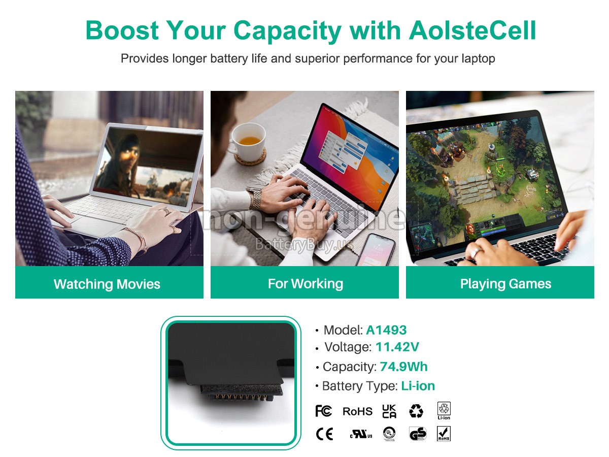 The replacement battery for Apple MGX92LL/A from BatteryBuy.us will be your best choice. We offer a high-quality laptop battery at a more reasonable price. Our Apple MGX92LL/A batteries can be charged/discharged for at least 600 cycles. Being made of ABS plastic case and the original IC protection chip, it could give you the new experience of excellent durability.