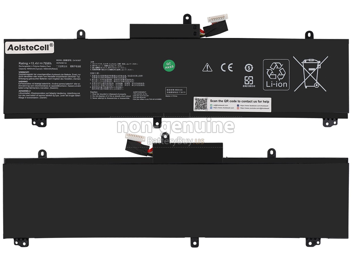 With first-class quality assurance, the battery for Asus Rog ZEPHYRUS FX516PM provides protections of voltage, short circuit, charging time, ESD, and so on. Each Asus Rog ZEPHYRUS FX516PM laptop battery has passed a series of safety certifications, such as CE, UL, ROHS, ISO9001/9002. It will be rigorously tested by our technicians before being shipped to your hands. We will try our best to select a high-quality Asus Rog ZEPHYRUS FX516PM battery for you.
