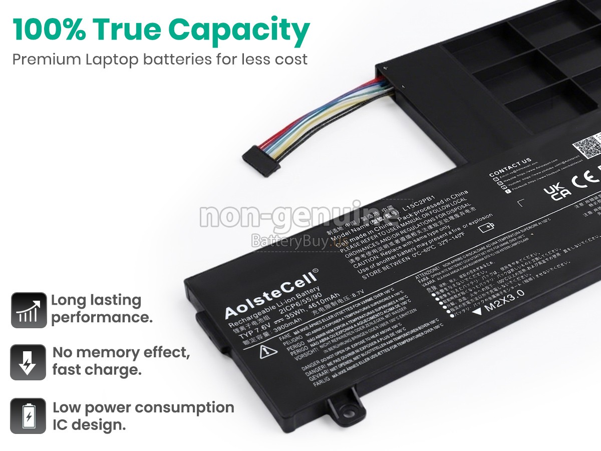 The replacement battery for Lenovo L15L2PB1 from BatteryBuy.us will be your best choice. We offer a high-quality laptop battery at a more reasonable price. Our Lenovo L15L2PB1 batteries can be charged/discharged for at least 600 cycles. Being made of ABS plastic case and the original IC protection chip, it could give you the new experience of excellent durability.