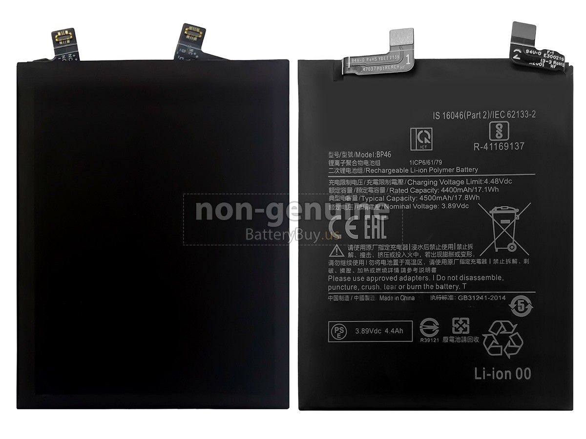 The replacement battery for XiaoMi BP46 from BatteryBuy.us will be your best choice. We offer a high-quality battery at a more reasonable price. Our XiaoMi BP46 batteries can be charged/discharged for at least 600 cycles. Being made of ABS plastic case and the original IC protection chip, it could give you the new experience of excellent durability.