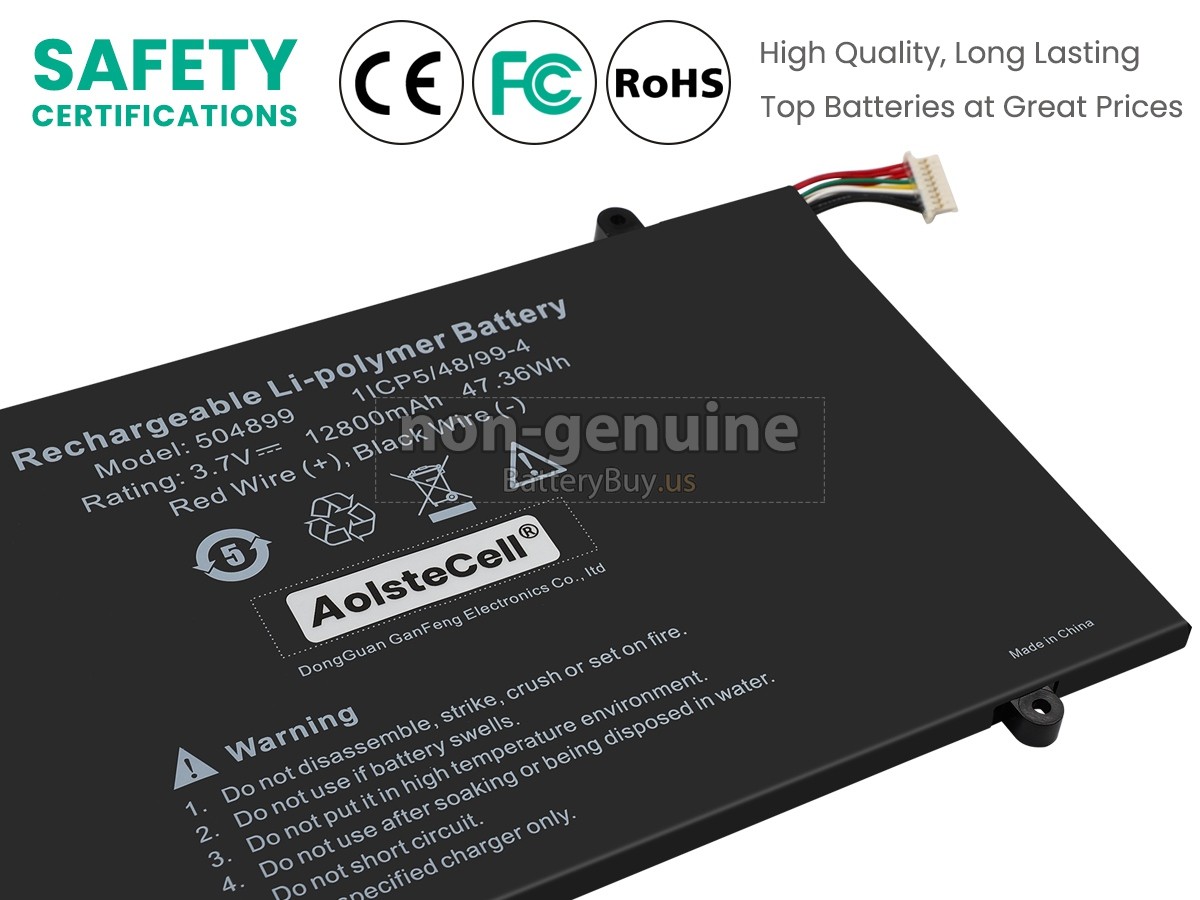 With first-class quality assurance, the battery for AolsteCell 504899 provides protections of voltage, short circuit, charging time, ESD, and so on. Each AolsteCell 504899 laptop battery has passed a series of safety certifications, such as CE, UL, ROHS, ISO9001/9002. It will be rigorously tested by our technicians before being shipped to your hands. We will try our best to select a high-quality AolsteCell 504899 battery for you.