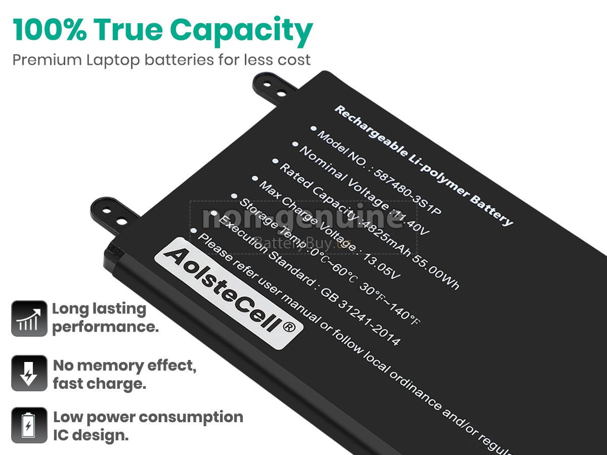 The replacement battery for AolsteCell 587480-3S1P from BatteryBuy.us will be your best choice. We offer a high-quality laptop battery at a more reasonable price. Our AolsteCell 587480-3S1P batteries can be charged/discharged for at least 600 cycles. Being made of ABS plastic case and the original IC protection chip, it could give you the new experience of excellent durability.