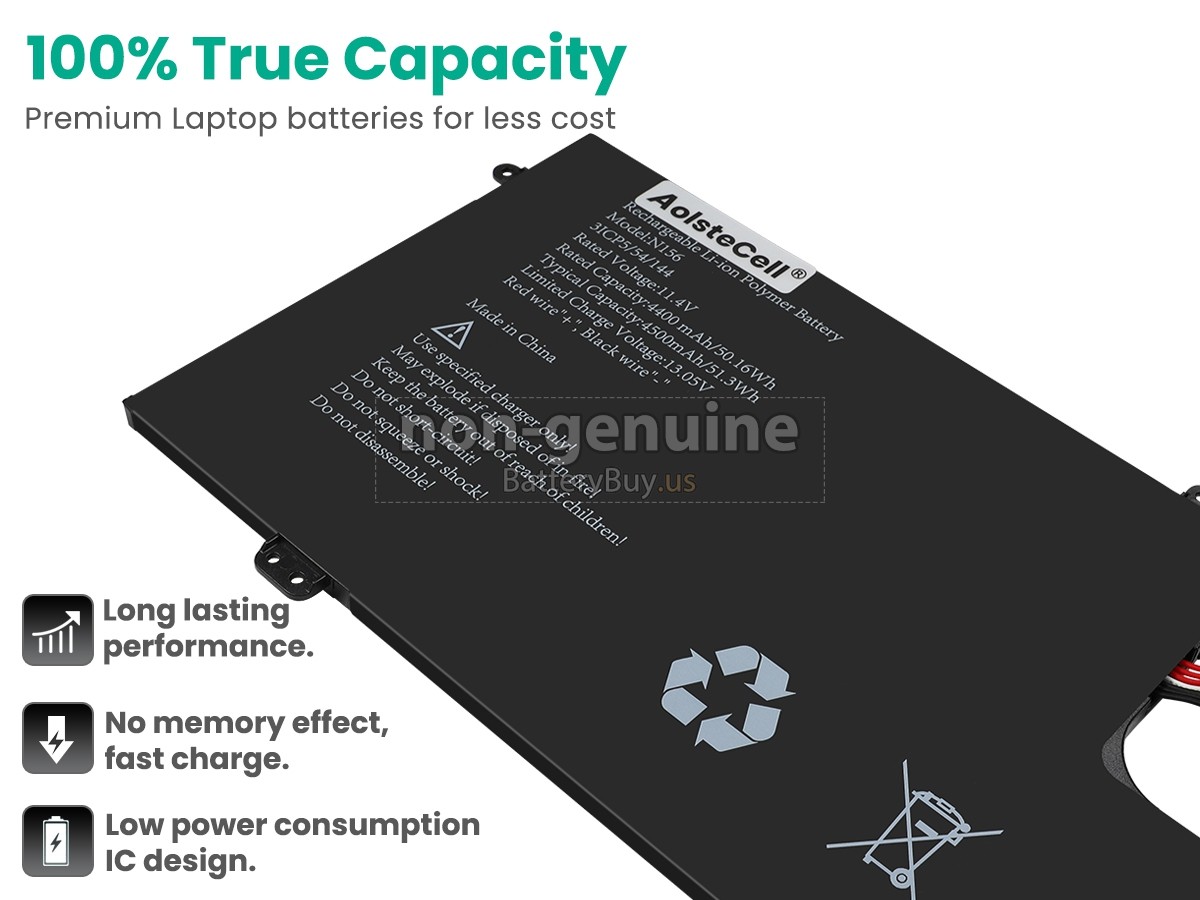 The replacement battery for AolsteCell N156 from BatteryBuy.us will be your best choice. We offer a high-quality laptop battery at a more reasonable price. Our AolsteCell N156 batteries can be charged/discharged for at least 600 cycles. Being made of ABS plastic case and the original IC protection chip, it could give you the new experience of excellent durability.