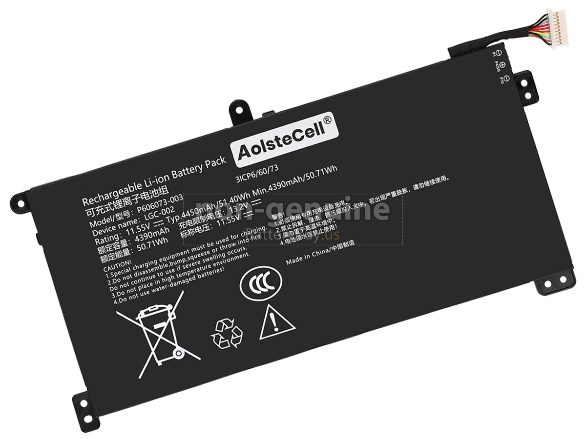 With first-class quality assurance, the battery for AolsteCell P606073-003 provides protections of voltage, short circuit, charging time, ESD, and so on. Each AolsteCell P606073-003 laptop battery has passed a series of safety certifications, such as CE, UL, ROHS, ISO9001/9002. It will be rigorously tested by our technicians before being shipped to your hands. We will try our best to select a high-quality AolsteCell P606073-003 battery for you.