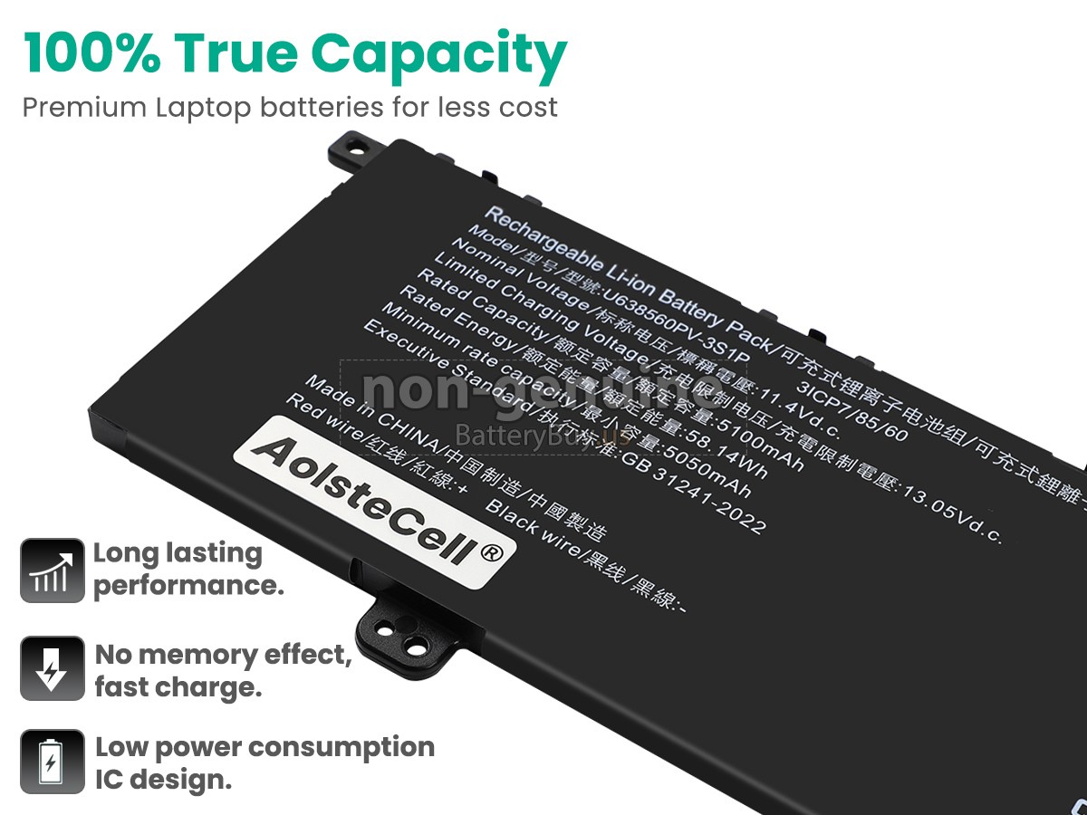 With first-class quality assurance, the battery for AolsteCell U638560PV-3S1P provides protections of voltage, short circuit, charging time, ESD, and so on. Each AolsteCell U638560PV-3S1P laptop battery has passed a series of safety certifications, such as CE, UL, ROHS, ISO9001/9002. It will be rigorously tested by our technicians before being shipped to your hands. We will try our best to select a high-quality AolsteCell U638560PV-3S1P battery for you.