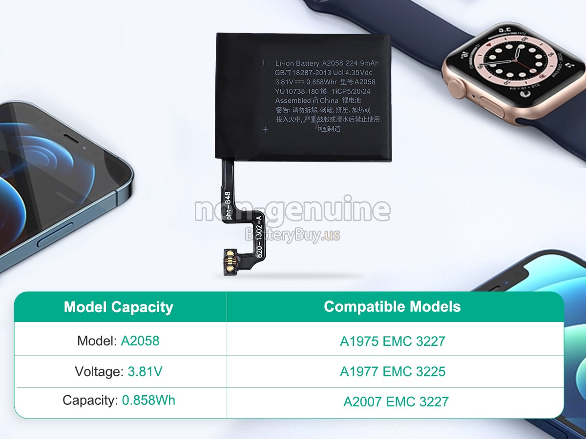 With first-class quality assurance, the battery for Apple A2007 EMC 3227 provides protections of voltage, short circuit, charging time, ESD, and so on. Each Apple A2007 EMC 3227 watch battery has passed a series of safety certifications, such as CE, UL, ROHS, ISO9001/9002. It will be rigorously tested by our technicians before being shipped to your hands. We will try our best to select a high-quality Apple A2007 EMC 3227 battery for you.