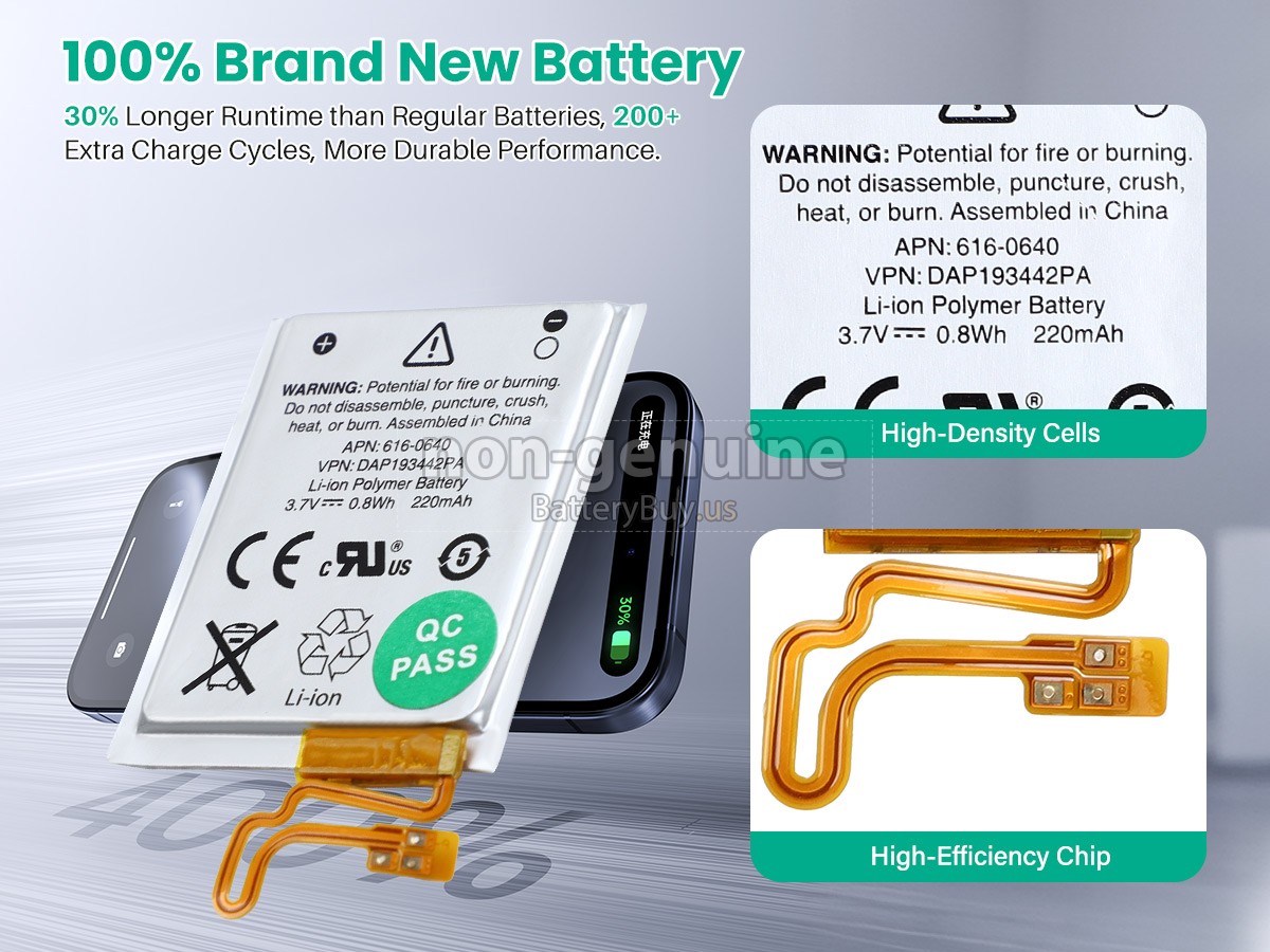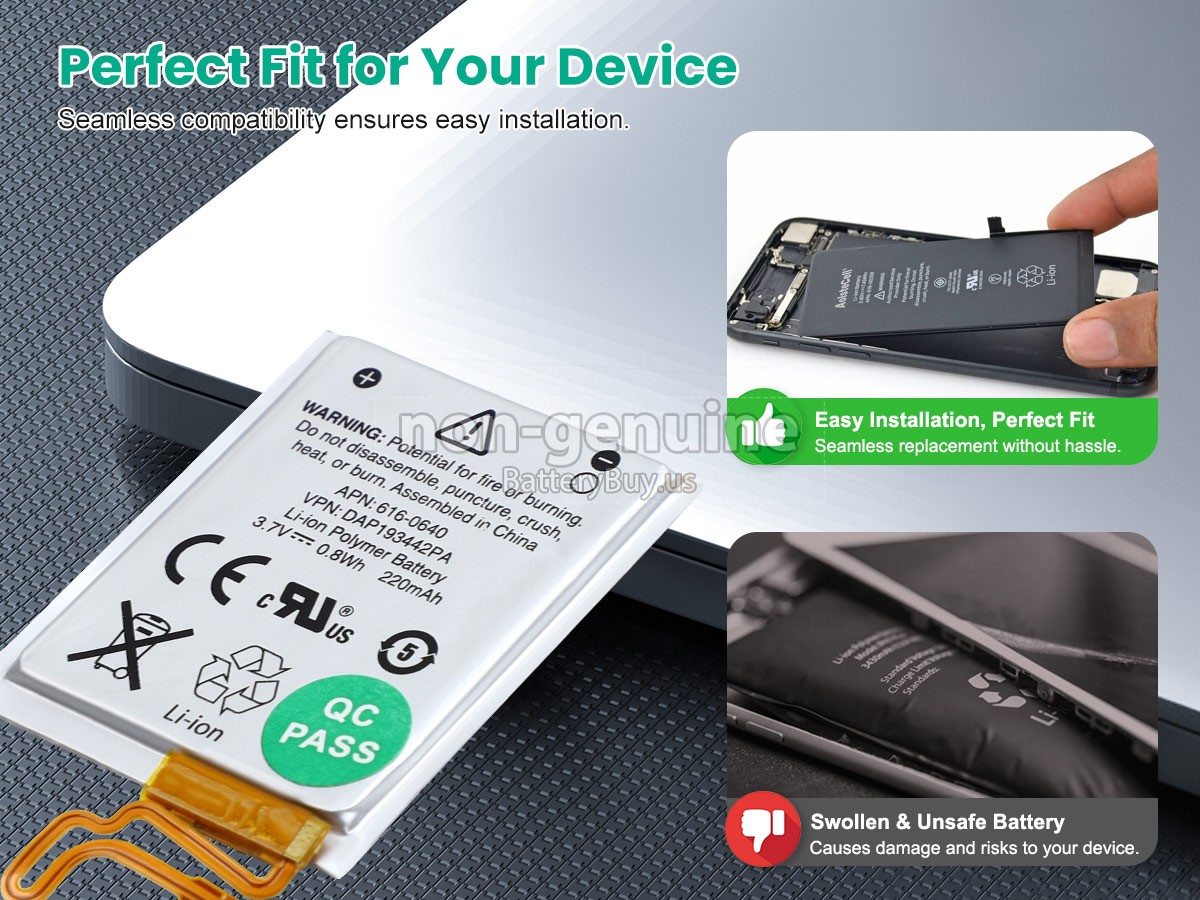 The replacement battery for Apple IPOD NANO 7 from BatteryBuy.us will be your best choice. We offer a high-quality battery at a more reasonable price. Our Apple IPOD NANO 7 batteries can be charged/discharged for at least 600 cycles. Being made of ABS plastic case and the original IC protection chip, it could give you the new experience of excellent durability.