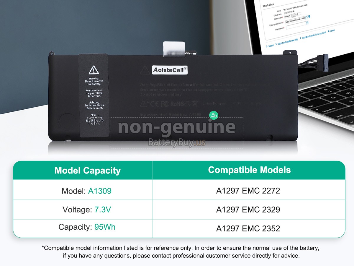 A: Through the product compatibility table, you can check if Apple MacBook Pro Core 2 DUO 2.93GHZ 17 inch A1297(EMC 2272) replacement battery is compatible with your laptop model. Clicking product larger Images, you can confirm the selected correctness of Apple MacBook Pro Core 2 DUO 2.93GHZ 17 inch A1297(EMC 2272) laptop battery. What's more, please pay attention to check if the voltage (rated value) is the same as your old one. For more details, please click How to find one correct battery for my laptop?