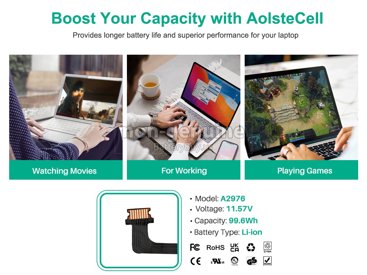 With first-class quality assurance, the battery for Apple MRW33LL/A provides protections of voltage, short circuit, charging time, ESD, and so on. Each Apple MRW33LL/A laptop battery has passed a series of safety certifications, such as CE, UL, ROHS, ISO9001/9002. It will be rigorously tested by our technicians before being shipped to your hands. We will try our best to select a high-quality Apple MRW33LL/A battery for you.