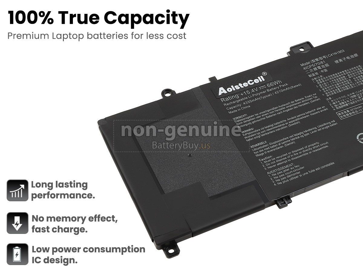 The replacement battery for Asus EXPERTBook B9 B9450FA-BM0397R from BatteryBuy.us will be your best choice. We offer a high-quality laptop battery at a more reasonable price. Our Asus EXPERTBook B9 B9450FA-BM0397R batteries can be charged/discharged for at least 600 cycles. Being made of ABS plastic case and the original IC protection chip, it could give you the new experience of excellent durability.
