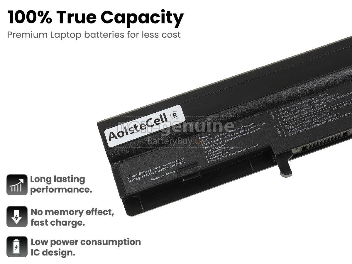 The replacement battery for Asus U36 from BatteryBuy.us will be your best choice. We offer a high-quality laptop battery at a more reasonable price. Our Asus U36 batteries can be charged/discharged for at least 600 cycles. Being made of ABS plastic case and the original IC protection chip, it could give you the new experience of excellent durability.