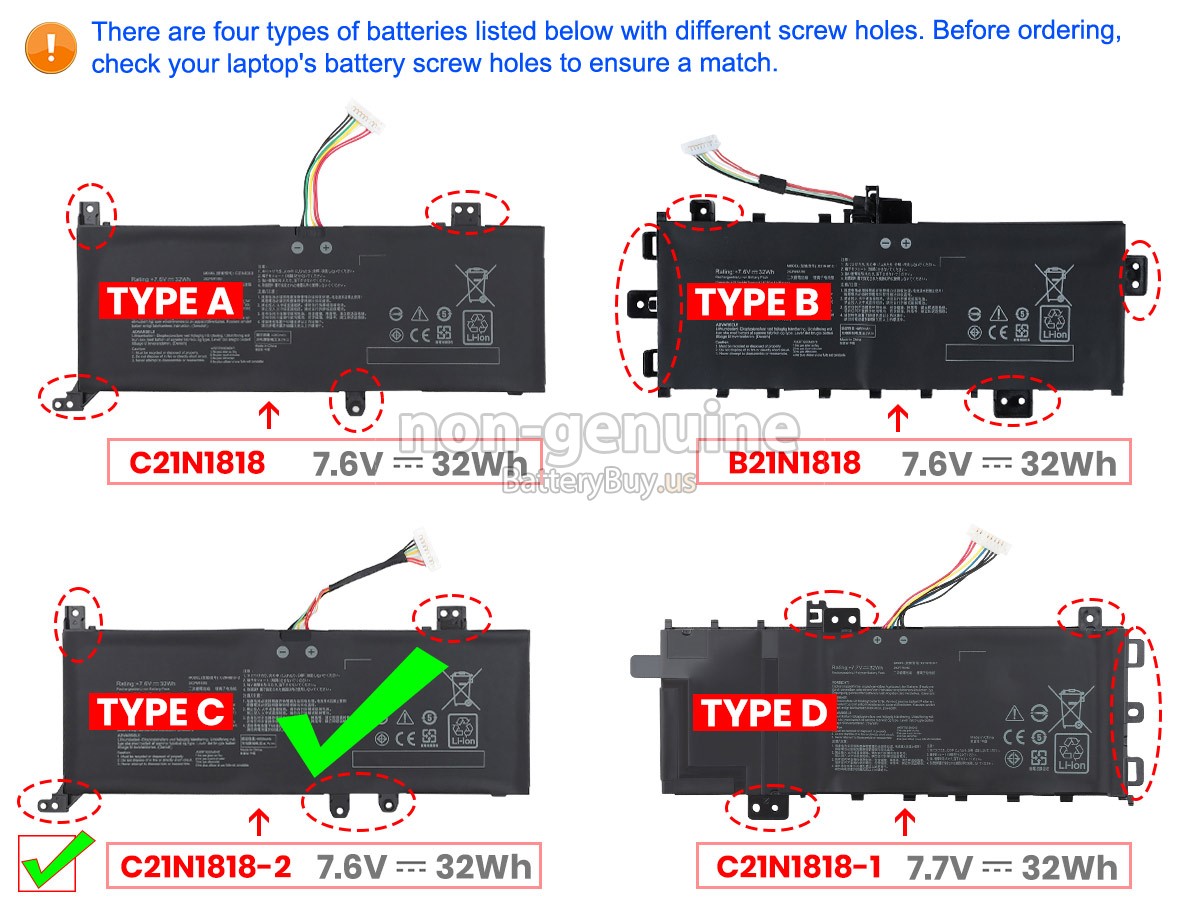 There are 2 types battery, before placing an order please ensure your old battery model name is [C21N1818], not [C21N1818-1] or [C21N1818-2]. - SKUBUS6760