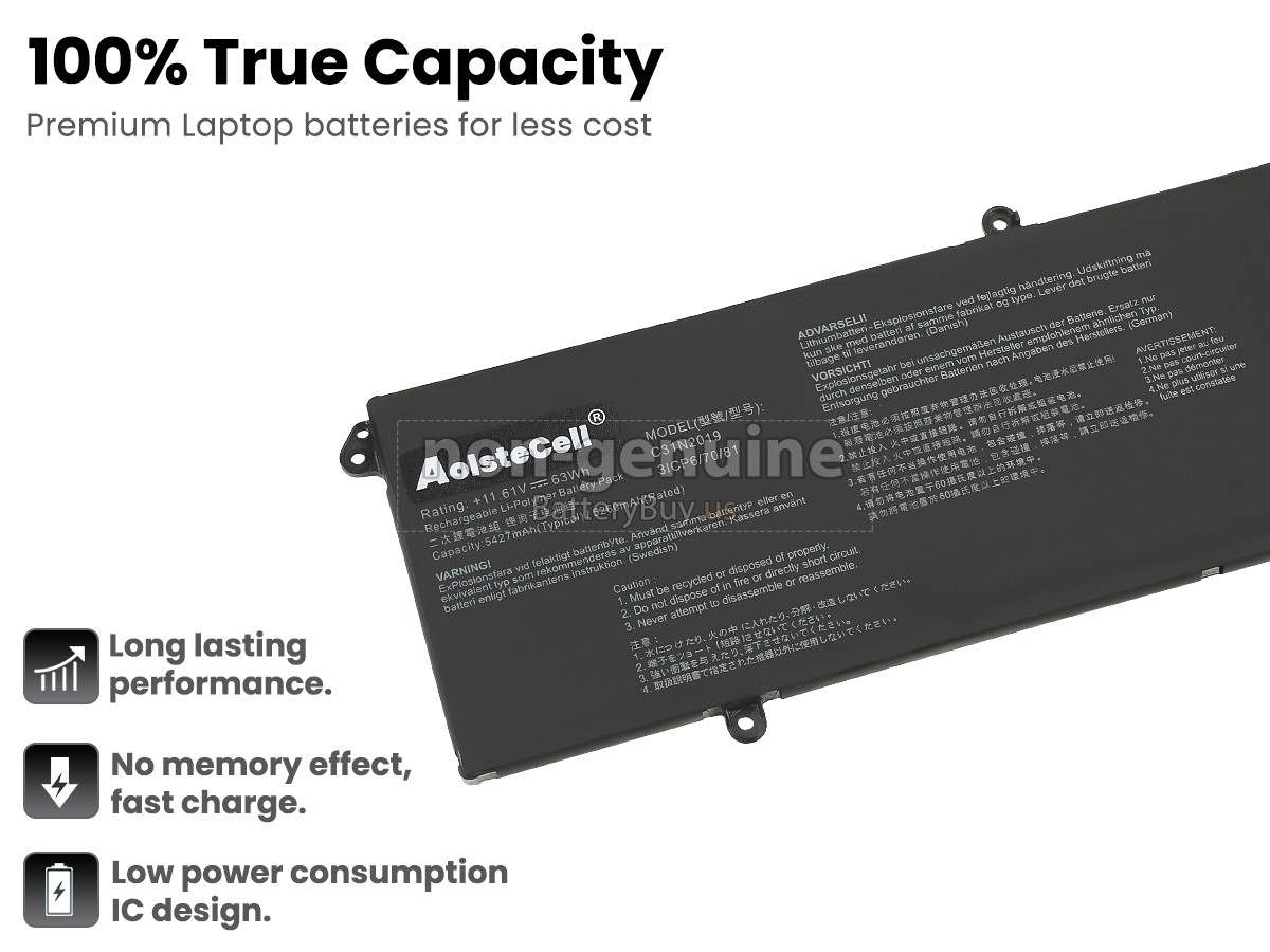 The replacement battery for Asus VivoBook Pro 14X OLED N7400PC-KM024T from BatteryBuy.us will be your best choice. We offer a high-quality laptop battery at a more reasonable price. Our Asus VivoBook Pro 14X OLED N7400PC-KM024T batteries can be charged/discharged for at least 600 cycles. Being made of ABS plastic case and the original IC protection chip, it could give you the new experience of excellent durability.