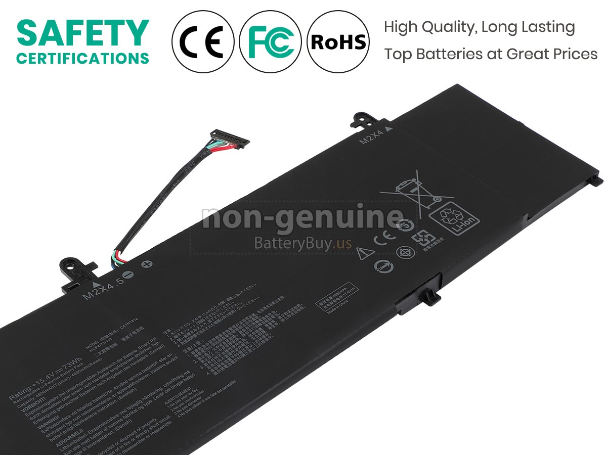 With first-class quality assurance, the battery for Asus ZenBook 15 UX533FD-A8068T provides protections of voltage, short circuit, charging time, ESD, and so on. Each Asus ZenBook 15 UX533FD-A8068T laptop battery has passed a series of safety certifications, such as CE, UL, ROHS, ISO9001/9002. It will be rigorously tested by our technicians before being shipped to your hands. We will try our best to select a high-quality Asus ZenBook 15 UX533FD-A8068T battery for you.