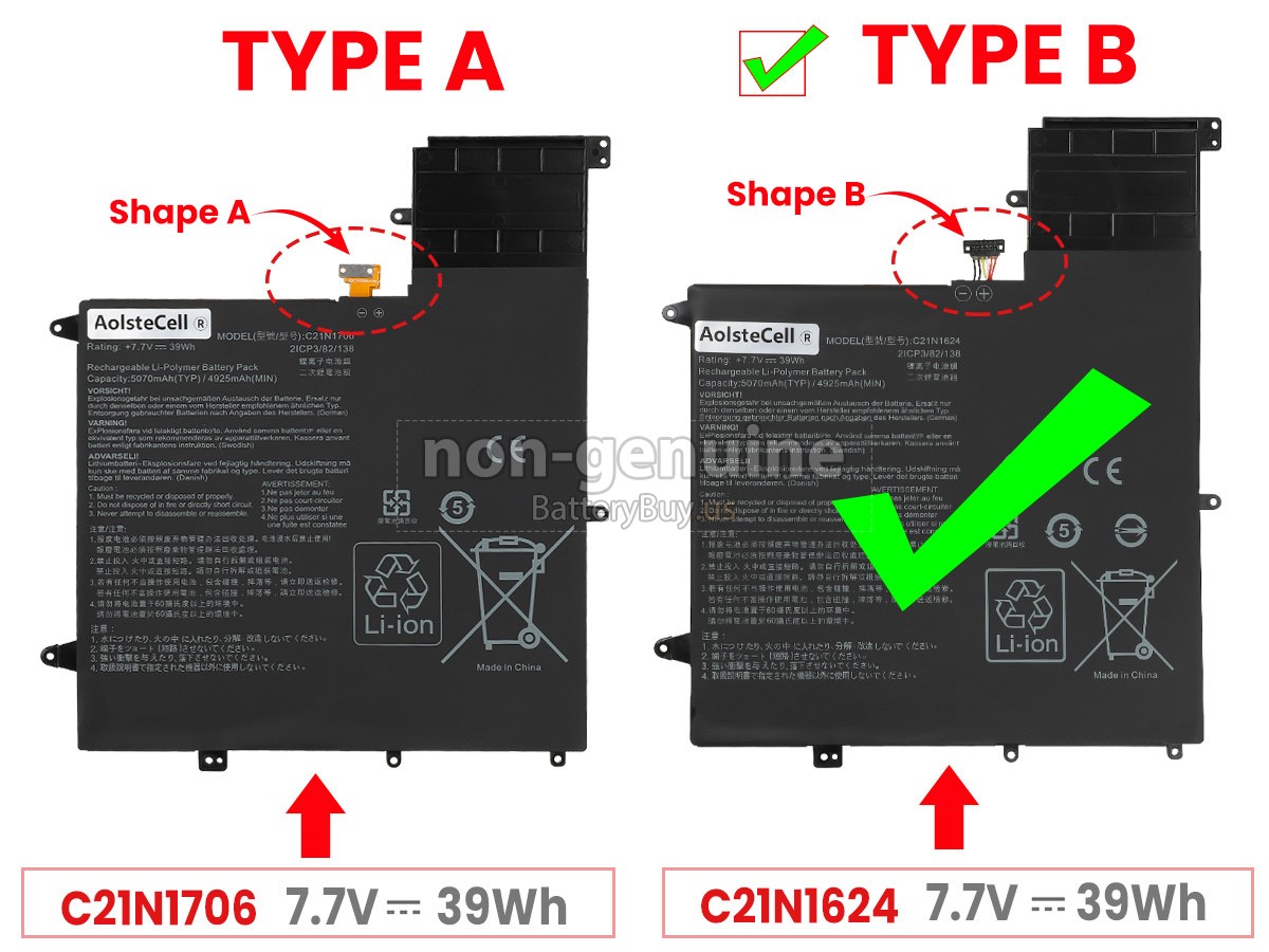 A: Through the product compatibility table, you can check if Asus ZenBook Flip S UX370UA-C4217T replacement battery is compatible with your laptop model. Clicking product larger Images, you can confirm the selected correctness of Asus ZenBook Flip S UX370UA-C4217T laptop battery. What's more, please pay attention to check if the voltage (rated value) is the same as your old one. For more details, please click How to find one correct battery for my laptop?