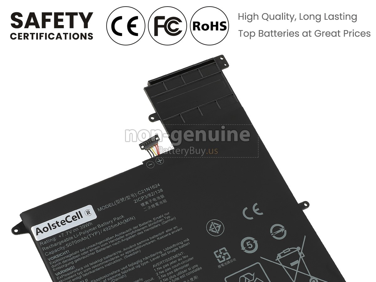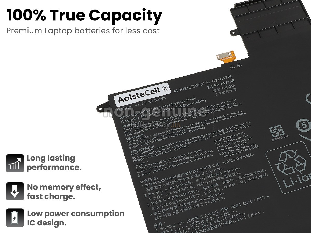 With first-class quality assurance, the battery for Asus ZenBook Flip S UX370UA-C4217T provides protections of voltage, short circuit, charging time, ESD, and so on. Each Asus ZenBook Flip S UX370UA-C4217T laptop battery has passed a series of safety certifications, such as CE, UL, ROHS, ISO9001/9002. It will be rigorously tested by our technicians before being shipped to your hands. We will try our best to select a high-quality Asus ZenBook Flip S UX370UA-C4217T battery for you.