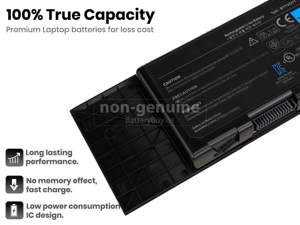 The replacement battery for Dell BTYVOY1 from BatteryBuy.us will be your best choice. We offer a high-quality laptop battery at a more reasonable price. Our Dell BTYVOY1 batteries can be charged/discharged for at least 600 cycles. Being made of ABS plastic case and the original IC protection chip, it could give you the new experience of excellent durability.