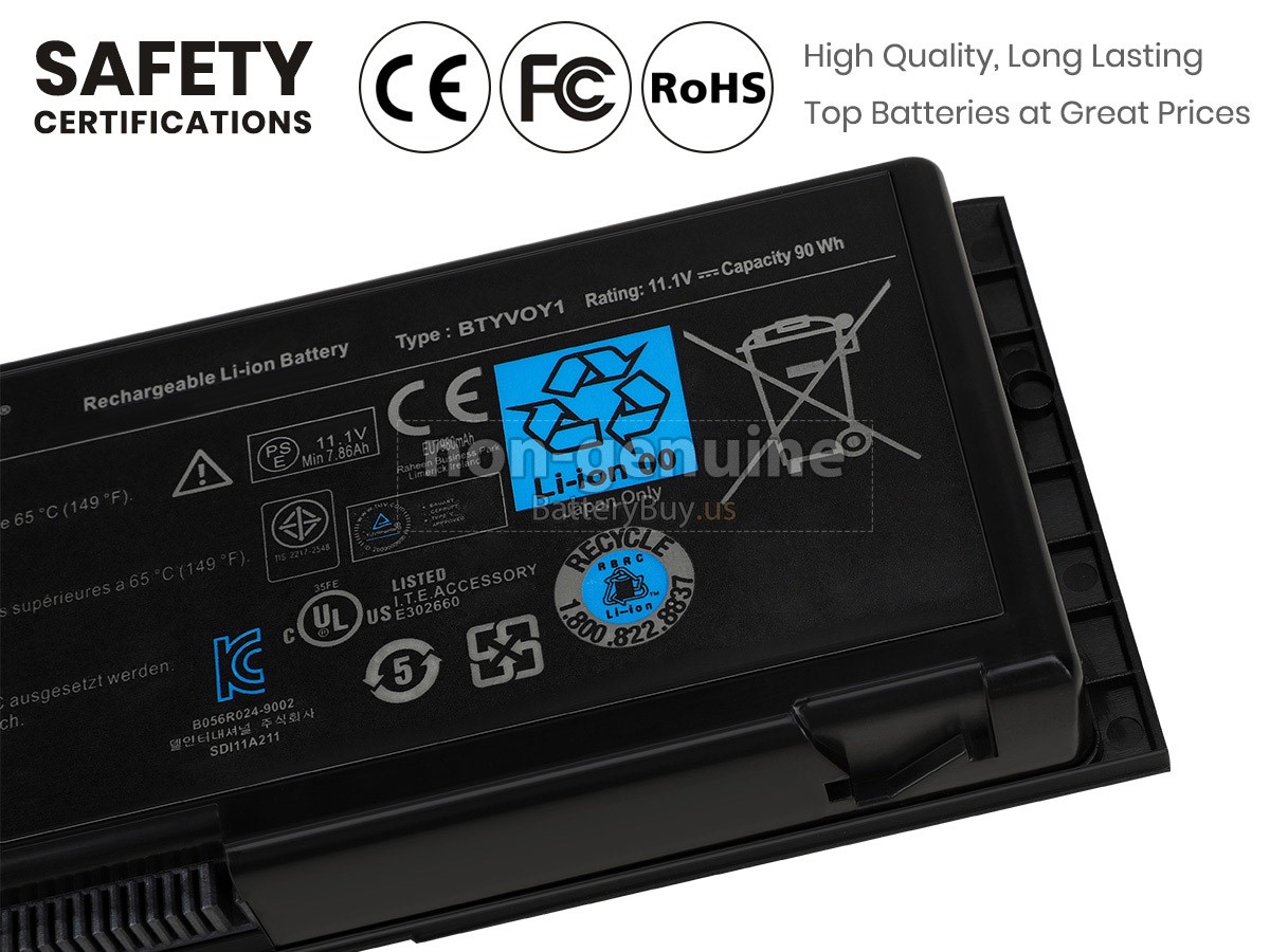 With first-class quality assurance, the battery for Dell BTYVOY1 provides protections of voltage, short circuit, charging time, ESD, and so on. Each Dell BTYVOY1 laptop battery has passed a series of safety certifications, such as CE, UL, ROHS, ISO9001/9002. It will be rigorously tested by our technicians before being shipped to your hands. We will try our best to select a high-quality Dell BTYVOY1 battery for you.