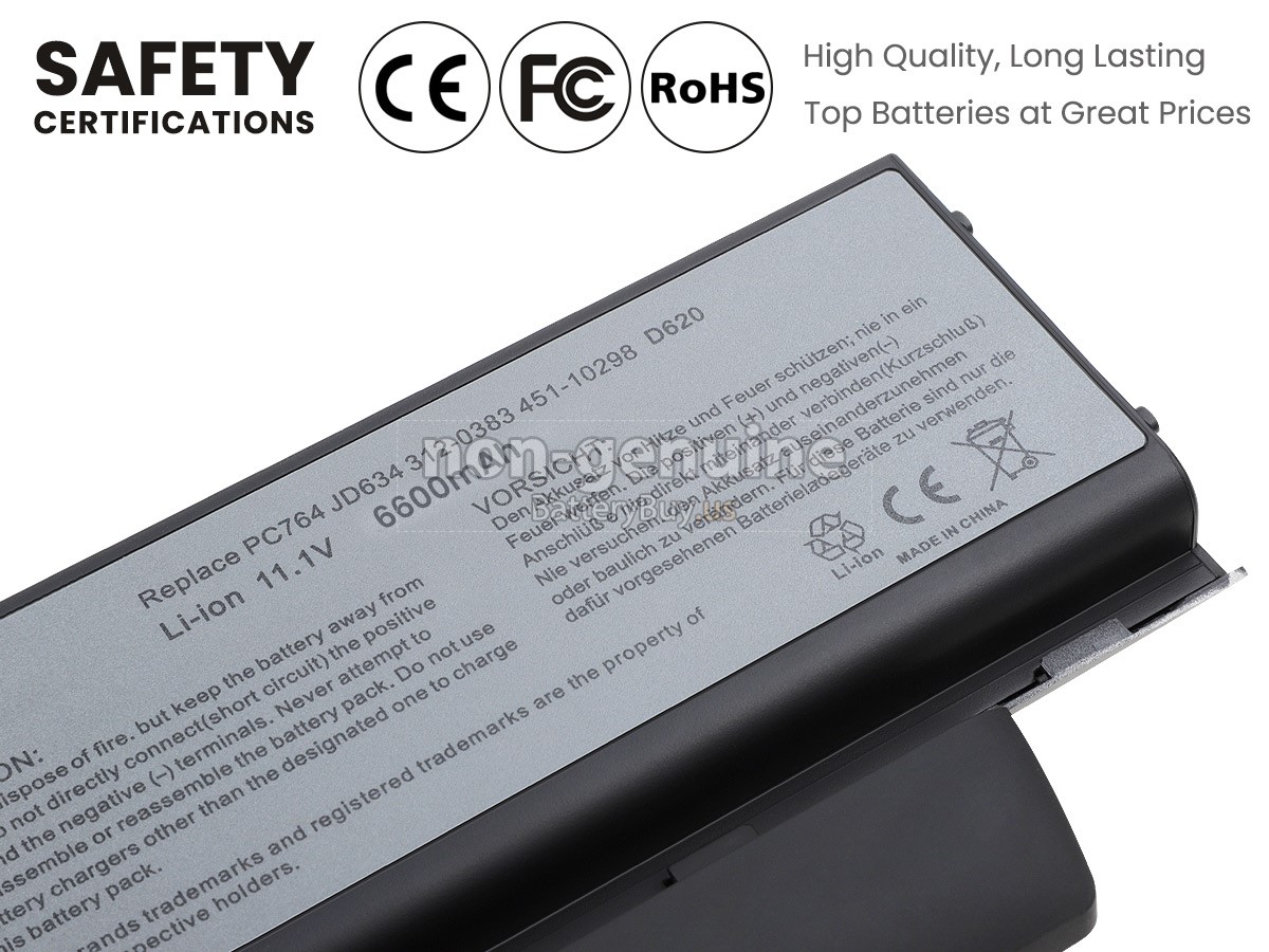 With first-class quality assurance, the battery for Dell Latitude D630C provides protections of voltage, short circuit, charging time, ESD, and so on. Each Dell Latitude D630C laptop battery has passed a series of safety certifications, such as CE, UL, ROHS, ISO9001/9002. It will be rigorously tested by our technicians before being shipped to your hands. We will try our best to select a high-quality Dell Latitude D630C battery for you.