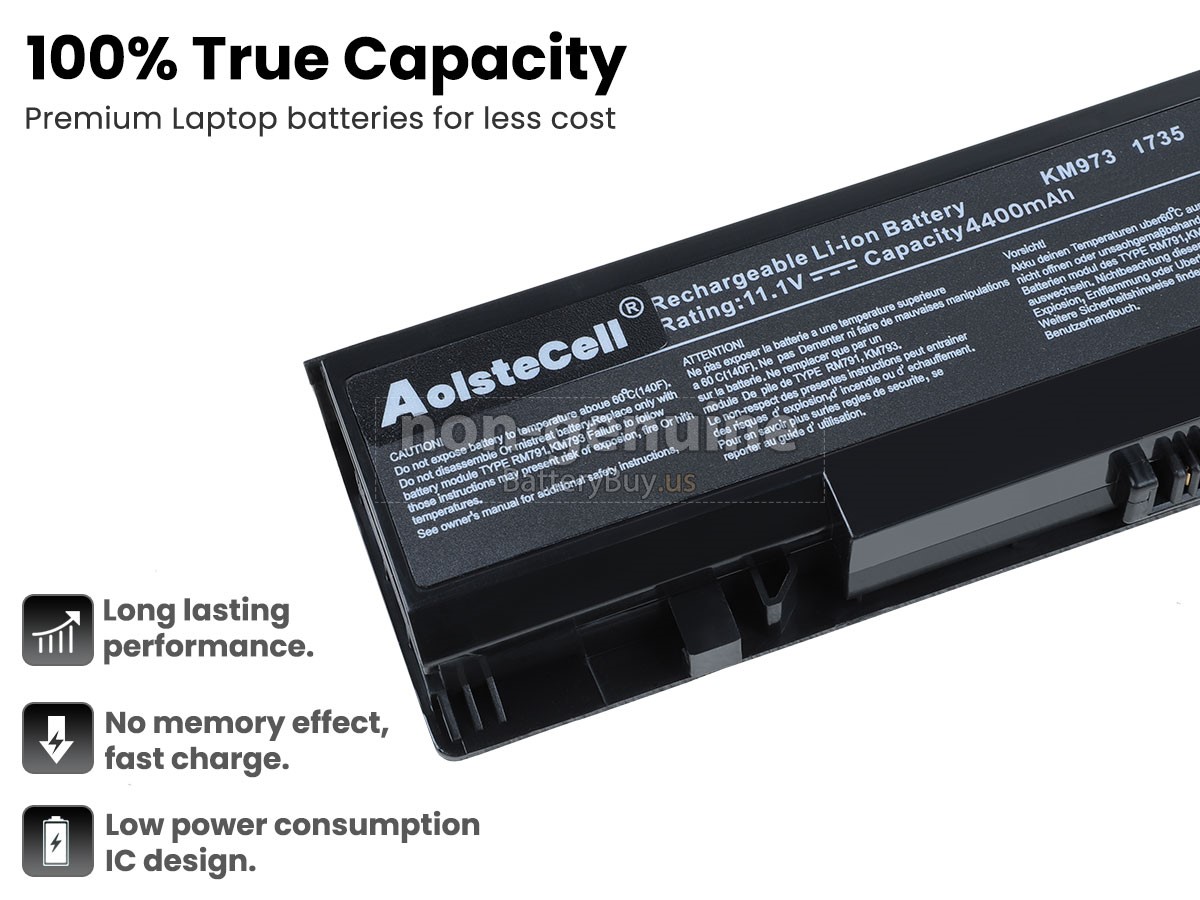 The replacement battery for Dell RM791 from BatteryBuy.us will be your best choice. We offer a high-quality laptop battery at a more reasonable price. Our Dell RM791 batteries can be charged/discharged for at least 600 cycles. Being made of ABS plastic case and the original IC protection chip, it could give you the new experience of excellent durability.