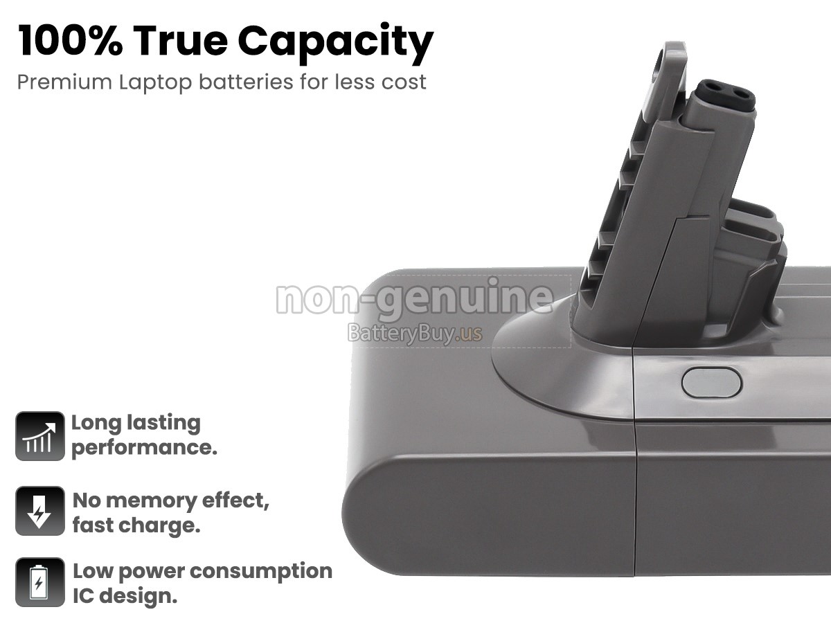The replacement battery for Dyson 281477-01 from BatteryBuy.us will be your best choice. We offer a high-quality cordless vacuum cleaner battery at a more reasonable price. Our Dyson 281477-01 batteries can be charged/discharged for at least 600 cycles. Being made of ABS plastic case and the original IC protection chip, it could give you the new experience of excellent durability.