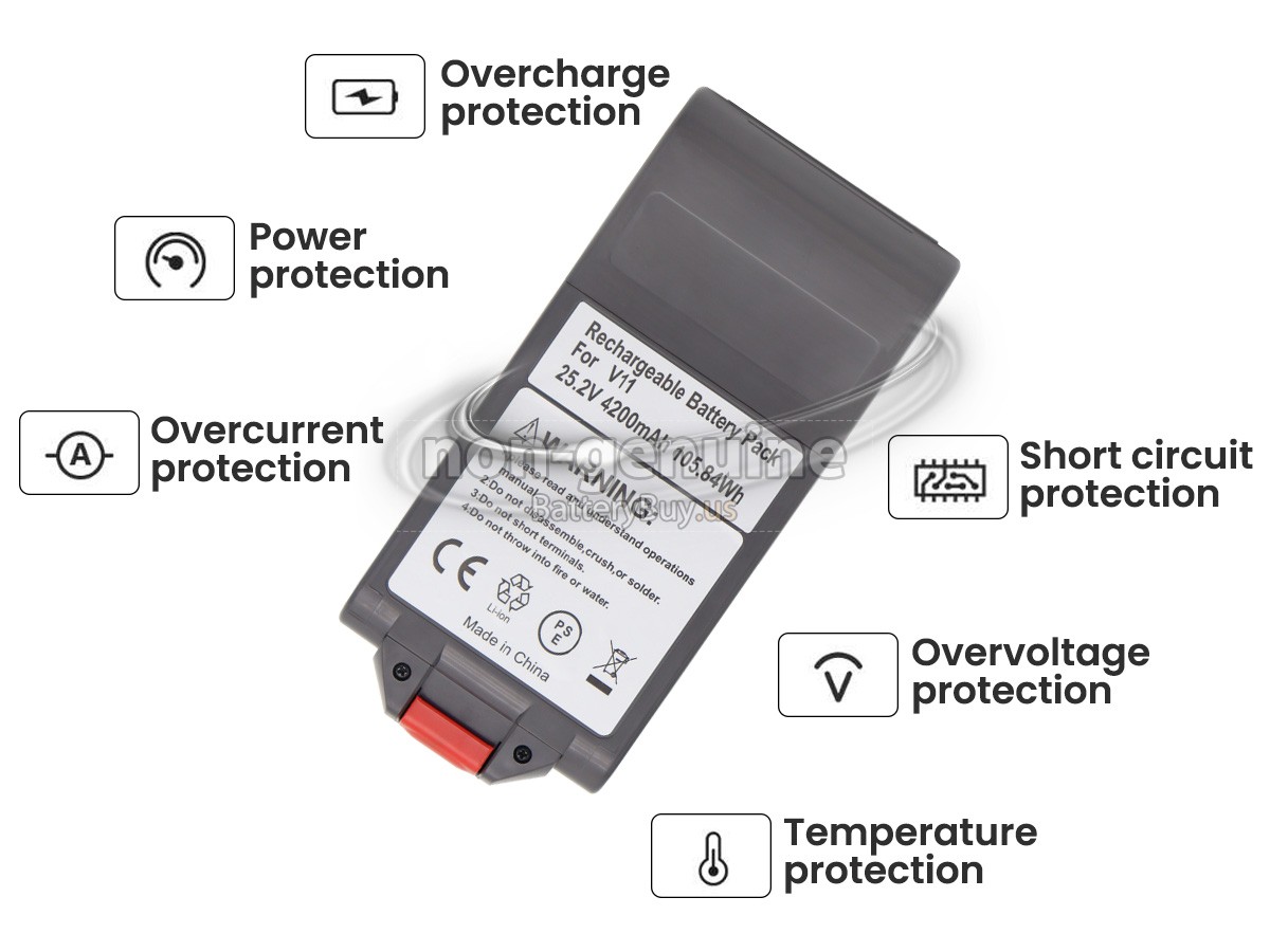 With first-class quality assurance, the battery for Dyson SV16 provides protections of voltage, short circuit, charging time, ESD, and so on. Each Dyson SV16 vacuum cleaner battery has passed a series of safety certifications, such as CE, UL, ROHS, ISO9001/9002. It will be rigorously tested by our technicians before being shipped to your hands. We will try our best to select a high-quality Dyson SV16 battery for you.