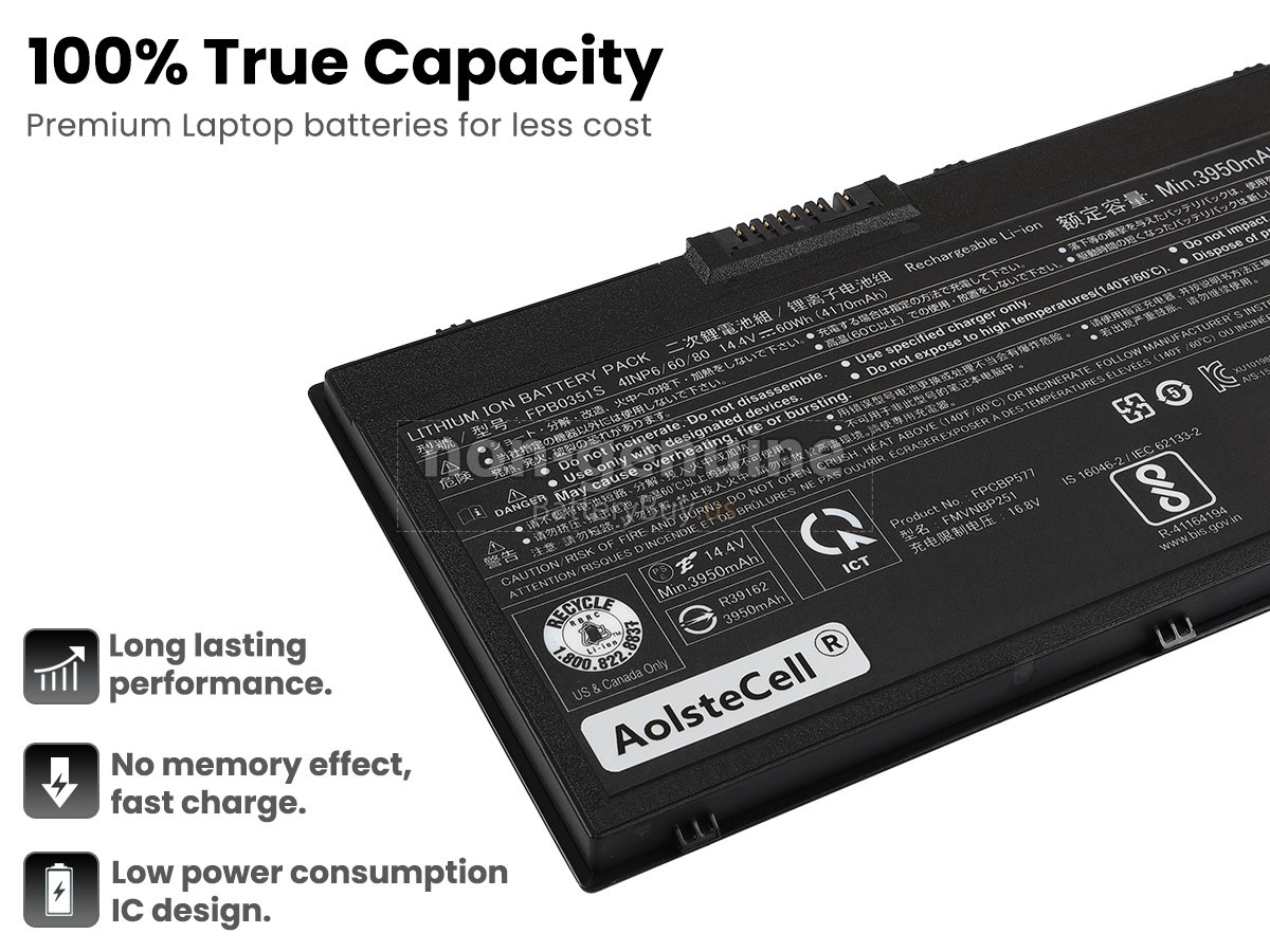 The replacement battery for Fujitsu FPCBP577 from BatteryBuy.us will be your best choice. We offer a high-quality laptop battery at a more reasonable price. Our Fujitsu FPCBP577 batteries can be charged/discharged for at least 600 cycles. Being made of ABS plastic case and the original IC protection chip, it could give you the new experience of excellent durability.