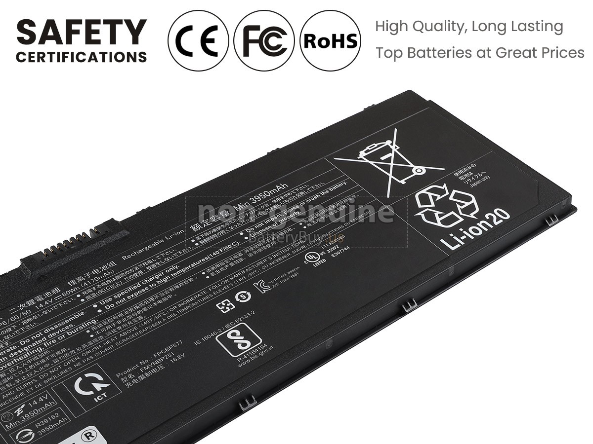 With first-class quality assurance, the battery for Fujitsu FPCBP577 provides protections of voltage, short circuit, charging time, ESD, and so on. Each Fujitsu FPCBP577 laptop battery has passed a series of safety certifications, such as CE, UL, ROHS, ISO9001/9002. It will be rigorously tested by our technicians before being shipped to your hands. We will try our best to select a high-quality Fujitsu FPCBP577 battery for you.