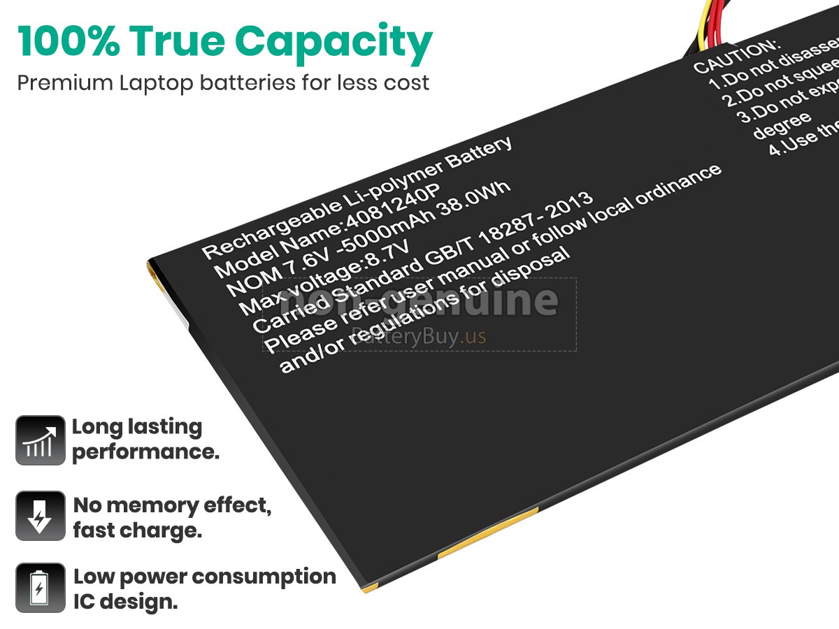 With first-class quality assurance, the battery for HIPAA 4081240P provides protections of voltage, short circuit, charging time, ESD, and so on. Each HIPAA 4081240P laptop battery has passed a series of safety certifications, such as CE, UL, ROHS, ISO9001/9002. It will be rigorously tested by our technicians before being shipped to your hands. We will try our best to select a high-quality HIPAA 4081240P battery for you.