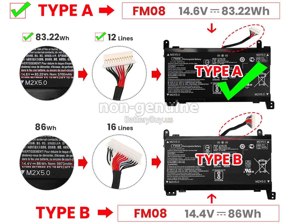 This battery's connector is 12 lines.If your old battery part number is 922976-855 and the capacity of the battery is 82Wh/83.22Wh and AC Adapter is 135W/150W, please order this 12-lines battery. - SKUBUS1097