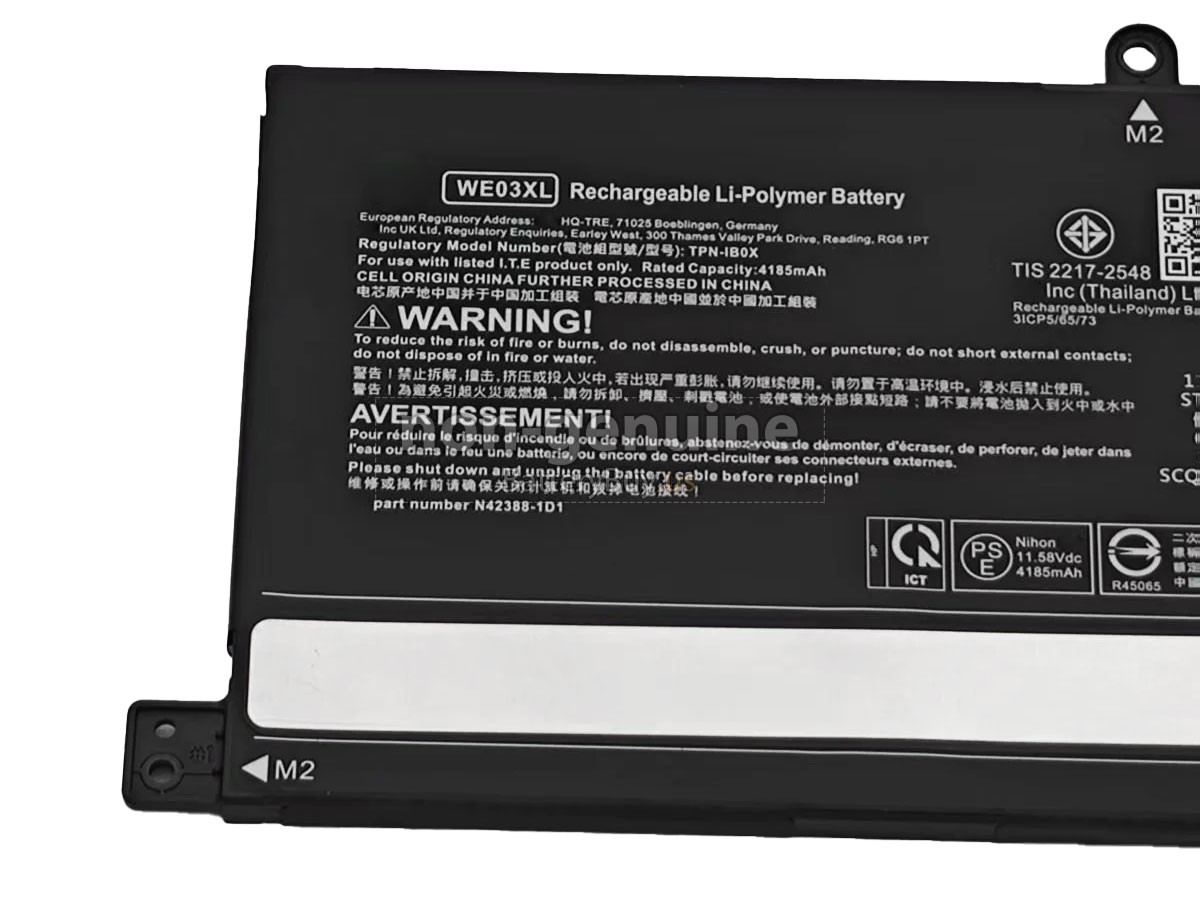 All our high-quality replacement batteries for HP WE03XL laptop come with a 1-year warranty. Warranty is applicable if the buyer has installed the battery properly in the device and has treated the battery correctly.