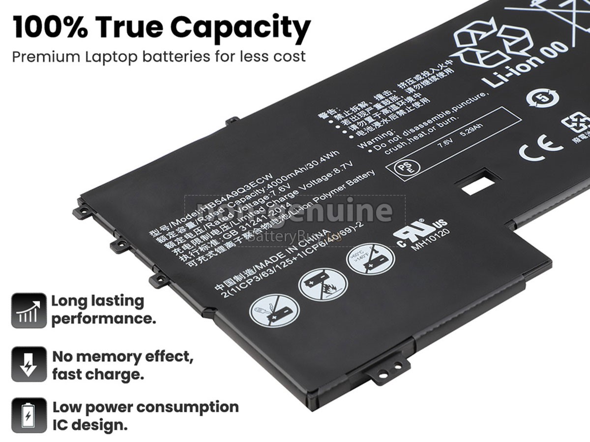 The replacement battery for Huawei WT-W09 from BatteryBuy.us will be your best choice. We offer a high-quality laptop battery at a more reasonable price. Our Huawei WT-W09 batteries can be charged/discharged for at least 600 cycles. Being made of ABS plastic case and the original IC protection chip, it could give you the new experience of excellent durability.