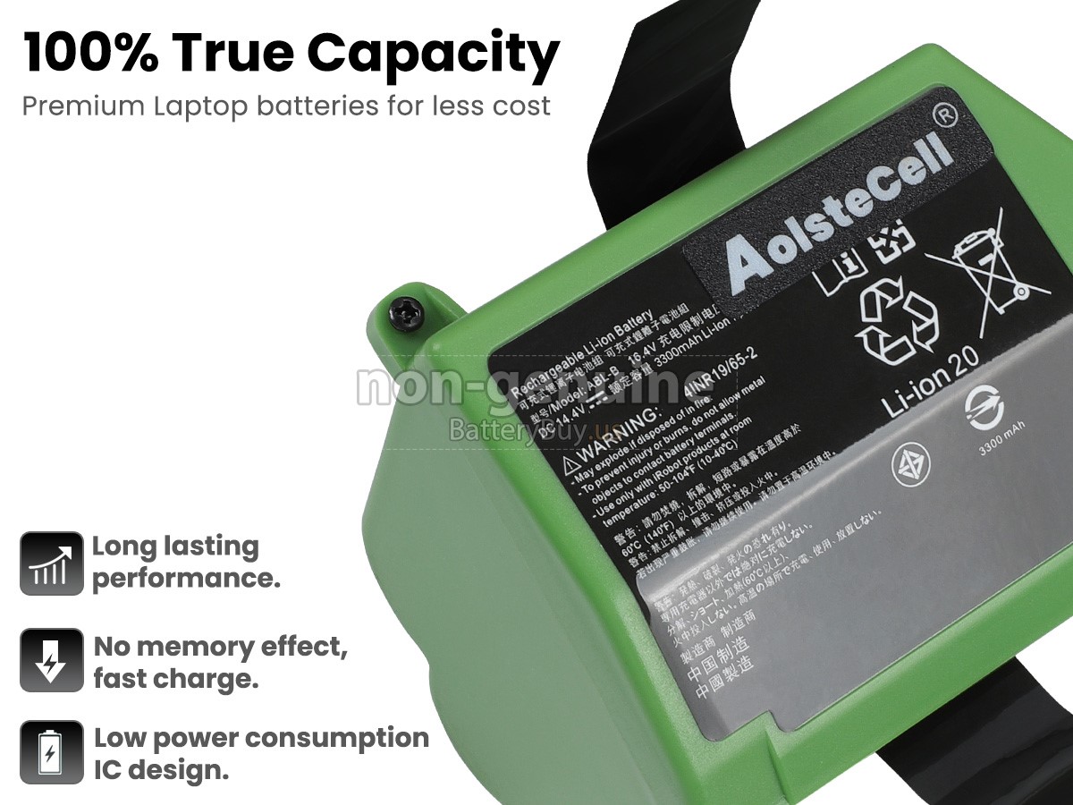 The replacement battery for iRobot ABL-B(4INR19/65-2) from BatteryBuy.us will be your best choice. We offer a high-quality cordless vacuum cleaner battery at a more reasonable price. Our iRobot ABL-B(4INR19/65-2) batteries can be charged/discharged for at least 600 cycles. Being made of ABS plastic case and the original IC protection chip, it could give you the new experience of excellent durability.