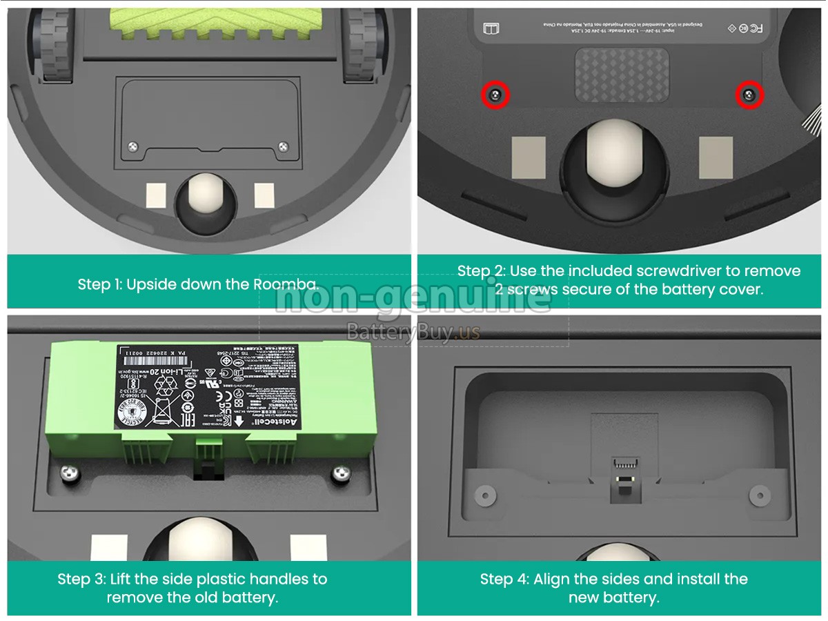 The replacement battery for iRobot ROOMBA I7+ from BatteryBuy.us will be your best choice. We offer a high-quality cordless vacuum cleaner battery at a more reasonable price. Our iRobot ROOMBA I7+ batteries can be charged/discharged for at least 600 cycles. Being made of ABS plastic case and the original IC protection chip, it could give you the new experience of excellent durability.