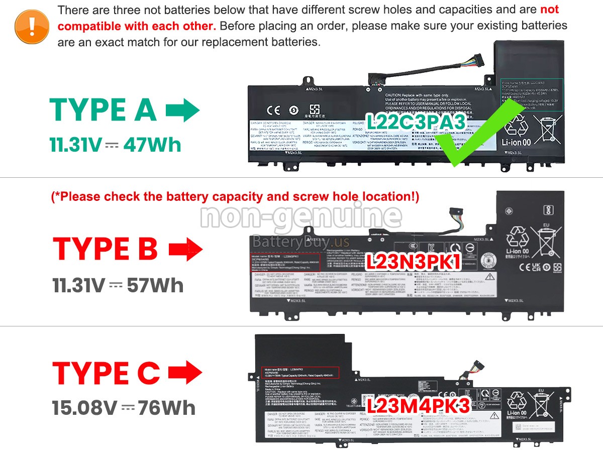 A: Through the product compatibility table, you can check if Lenovo IdeaPad SLIM 5 16AHP9-83DD002LLM replacement battery is compatible with your laptop model. Clicking product larger Images, you can confirm the selected correctness of Lenovo IdeaPad SLIM 5 16AHP9-83DD002LLM laptop battery. What's more, please pay attention to check if the voltage (rated value) is the same as your old one. For more details, please click How to find one correct battery for my laptop?