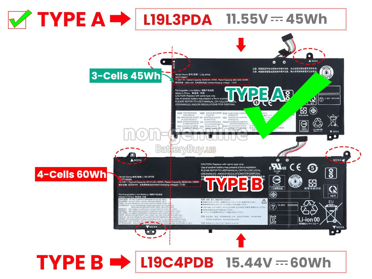 A: Through the product compatibility table, you can check if Lenovo THINKBOOK 15 G3 ACL-21A4001UFE replacement battery is compatible with your laptop model. Clicking product larger Images, you can confirm the selected correctness of Lenovo THINKBOOK 15 G3 ACL-21A4001UFE laptop battery. What's more, please pay attention to check if the voltage (rated value) is the same as your old one. For more details, please click How to find one correct battery for my laptop?