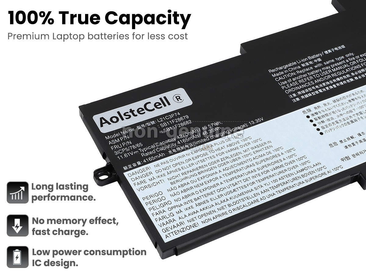 With first-class quality assurance, the battery for Lenovo ThinkPad X1 NANO GEN 3-21K10003CA provides protections of voltage, short circuit, charging time, ESD, and so on. Each Lenovo ThinkPad X1 NANO GEN 3-21K10003CA laptop battery has passed a series of safety certifications, such as CE, UL, ROHS, ISO9001/9002. It will be rigorously tested by our technicians before being shipped to your hands. We will try our best to select a high-quality Lenovo ThinkPad X1 NANO GEN 3-21K10003CA battery for you.