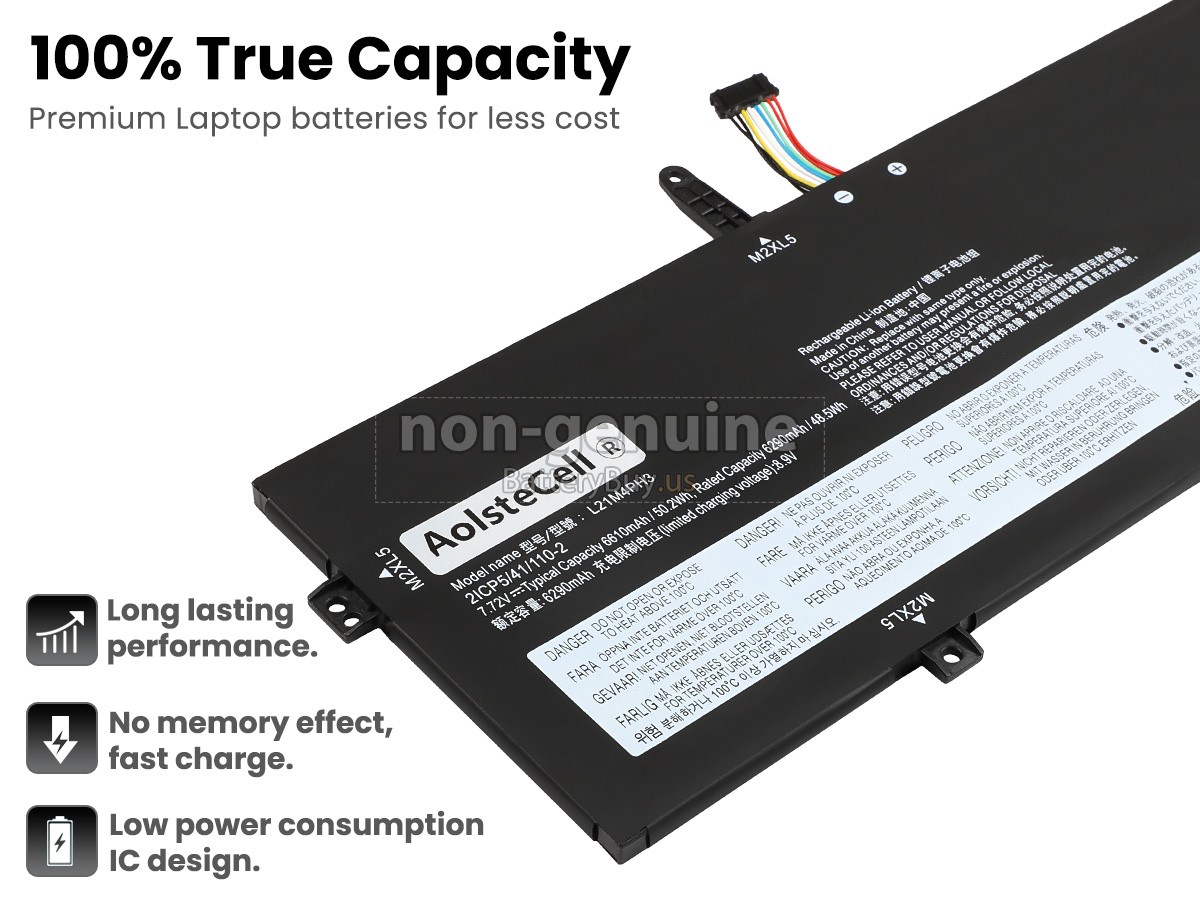 The replacement battery for Lenovo YOGA SLIM 7 CARBON 13IAP7-82U9003FPB from BatteryBuy.us will be your best choice. We offer a high-quality laptop battery at a more reasonable price. Our Lenovo YOGA SLIM 7 CARBON 13IAP7-82U9003FPB batteries can be charged/discharged for at least 600 cycles. Being made of ABS plastic case and the original IC protection chip, it could give you the new experience of excellent durability.