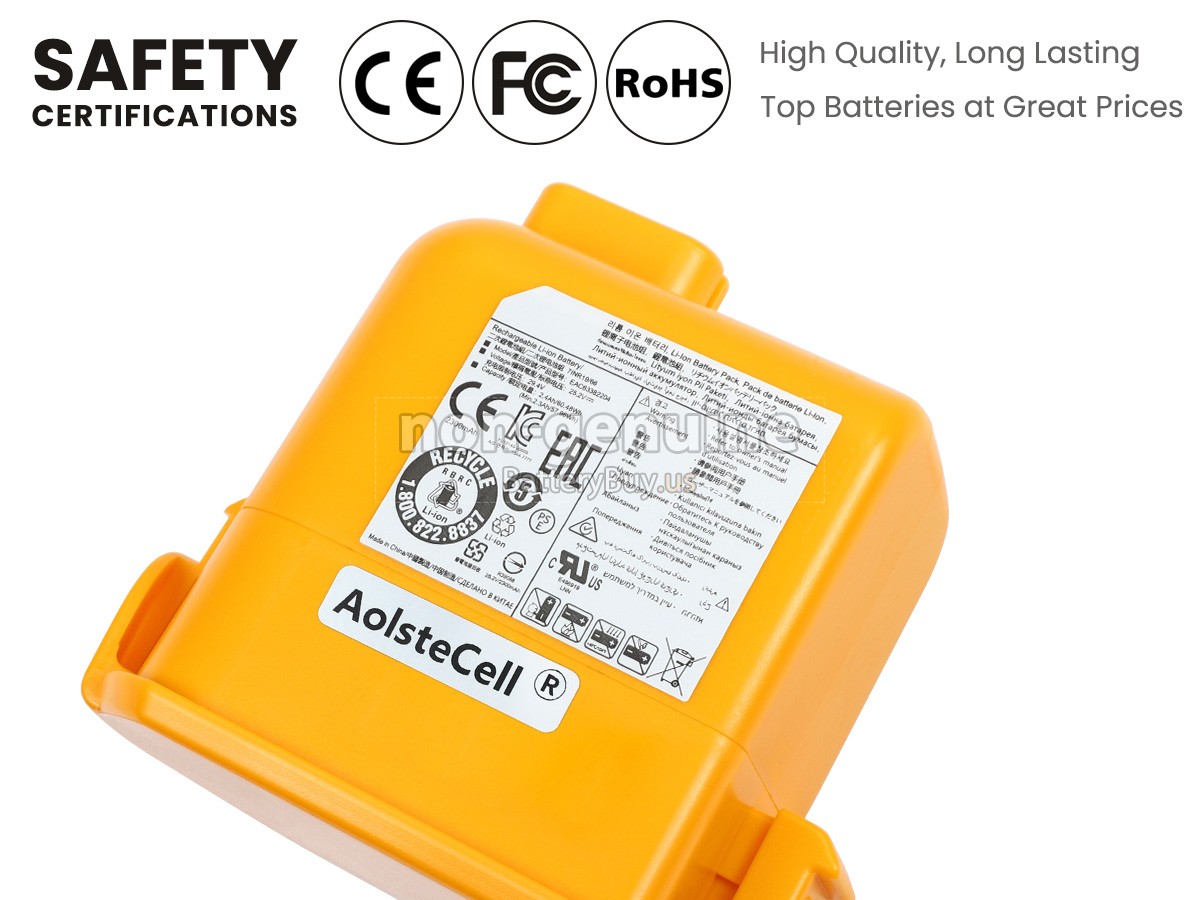 With first-class quality assurance, the battery for LG CORD ZERO A9 PLUS provides protections of voltage, short circuit, charging time, ESD, and so on. Each LG CORD ZERO A9 PLUS vacuum cleaner battery has passed a series of safety certifications, such as CE, UL, ROHS, ISO9001/9002. It will be rigorously tested by our technicians before being shipped to your hands. We will try our best to select a high-quality LG CORD ZERO A9 PLUS battery for you.
