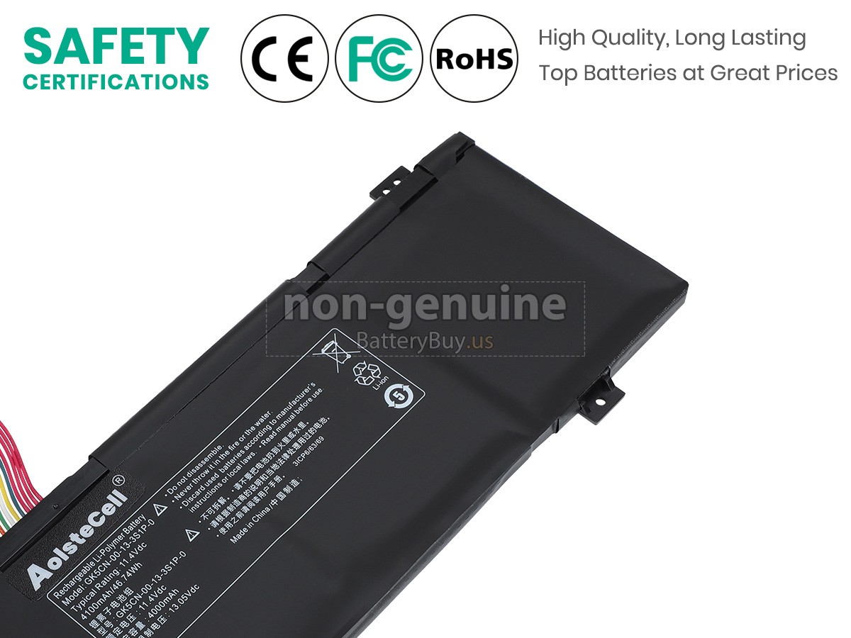 The replacement battery for Mechrevo GK5CN4Z from BatteryBuy.us will be your best choice. We offer a high-quality laptop battery at a more reasonable price. Our Mechrevo GK5CN4Z batteries can be charged/discharged for at least 600 cycles. Being made of ABS plastic case and the original IC protection chip, it could give you the new experience of excellent durability.