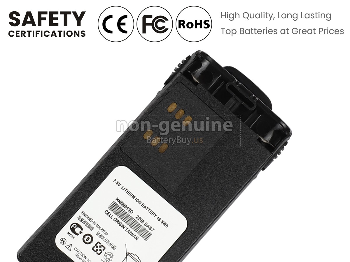 With first-class quality assurance, the battery for Motorola HNN9013D_R provides protections of voltage, short circuit, charging time, ESD, and so on. Each Motorola HNN9013D_R laptop battery has passed a series of safety certifications, such as CE, UL, ROHS, ISO9001/9002. It will be rigorously tested by our technicians before being shipped to your hands. We will try our best to select a high-quality Motorola HNN9013D_R battery for you.