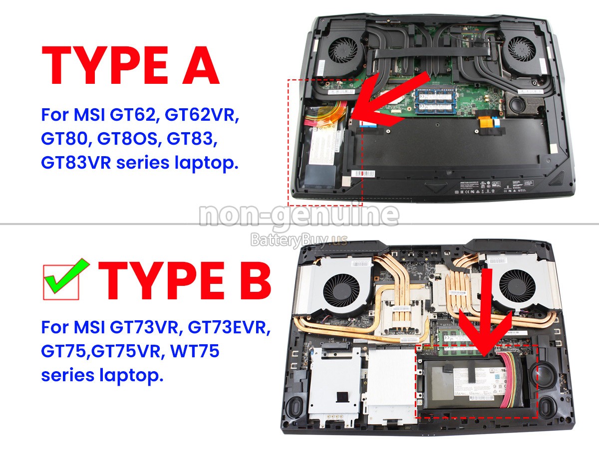 A: Through the product compatibility table, you can check if MSI GT73EVR 7RF-1012F replacement battery is compatible with your laptop model. Clicking product larger Images, you can confirm the selected correctness of MSI GT73EVR 7RF-1012F laptop battery. What's more, please pay attention to check if the voltage (rated value) is the same as your old one. For more details, please click How to find one correct battery for my laptop?