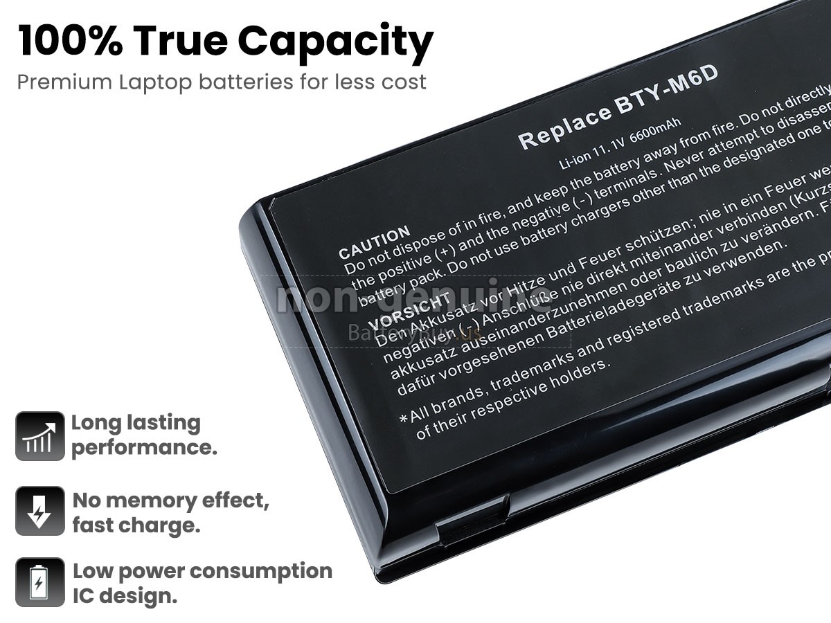 All our high-quality replacement batteries for MSI GX780R-024CS laptop come with a 1-year warranty. Warranty is applicable if the buyer has installed the battery properly in the device and has treated the battery correctly.