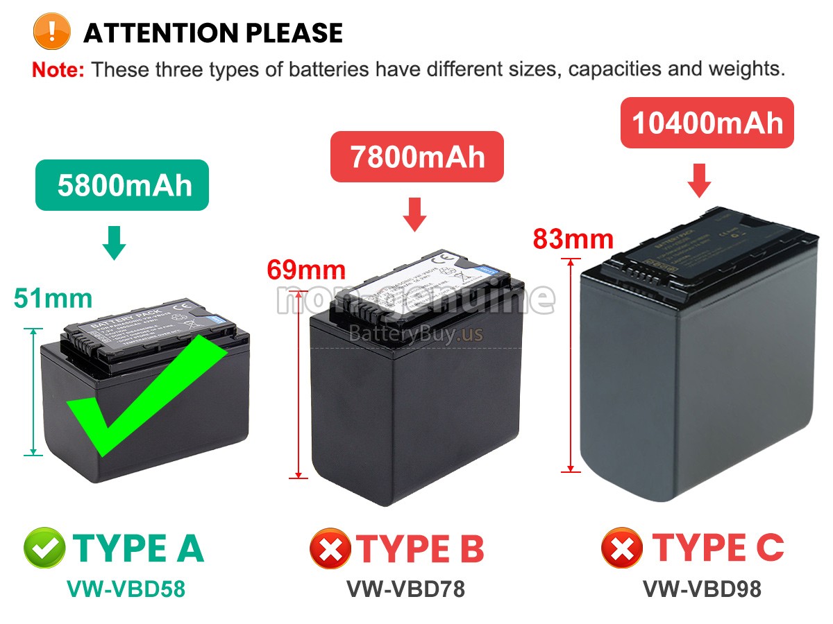VW-VBD58/78/98 has capacity and size differences, can be compatible with the use of larger capacity battery will have a part of the battery bulge. - SKUBUS6775
