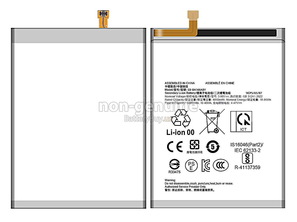 With first-class quality assurance, the battery for Samsung EB-BA166ABY provides protections of voltage, short circuit, charging time, ESD, and so on. Each Samsung EB-BA166ABY battery has passed a series of safety certifications, such as CE, UL, ROHS, ISO9001/9002. It will be rigorously tested by our technicians before being shipped to your hands. We will try our best to select a high-quality Samsung EB-BA166ABY battery for you.