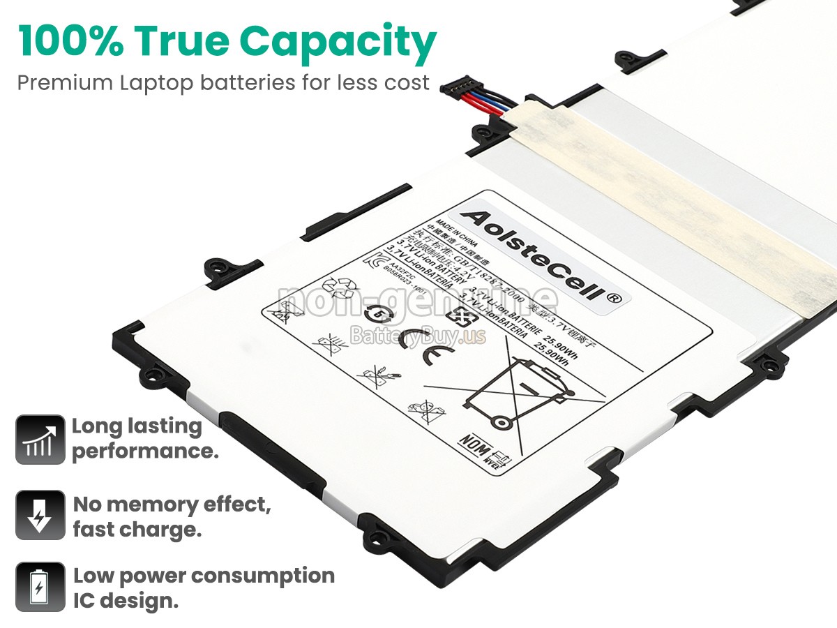 The replacement battery for Samsung GT-P5110 Galaxy TAB 2 10.1 WIFI from BatteryBuy.us will be your best choice. We offer a high-quality laptop battery at a more reasonable price. Our Samsung GT-P5110 Galaxy TAB 2 10.1 WIFI batteries can be charged/discharged for at least 600 cycles. Being made of ABS plastic case and the original IC protection chip, it could give you the new experience of excellent durability.