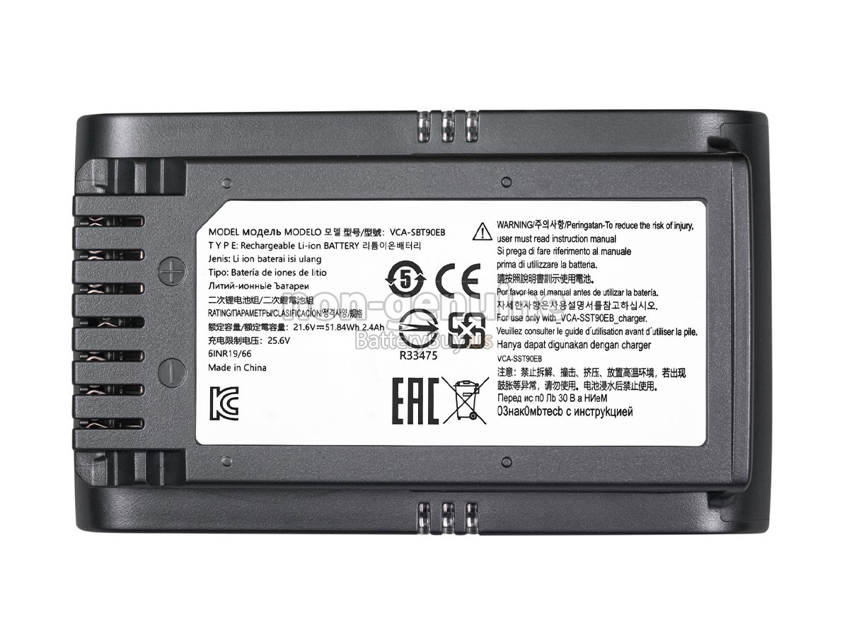 With first-class quality assurance, the battery for Samsung VCA-SBT90E provides protections of voltage, short circuit, charging time, ESD, and so on. Each Samsung VCA-SBT90E vacuum cleaner battery has passed a series of safety certifications, such as CE, UL, ROHS, ISO9001/9002. It will be rigorously tested by our technicians before being shipped to your hands. We will try our best to select a high-quality Samsung VCA-SBT90E battery for you.