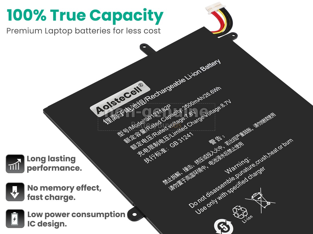 With first-class quality assurance, the battery for Teclast MAXBOOK Y11 H1M6 provides protections of voltage, short circuit, charging time, ESD, and so on. Each Teclast MAXBOOK Y11 H1M6 laptop battery has passed a series of safety certifications, such as CE, UL, ROHS, ISO9001/9002. It will be rigorously tested by our technicians before being shipped to your hands. We will try our best to select a high-quality Teclast MAXBOOK Y11 H1M6 battery for you.