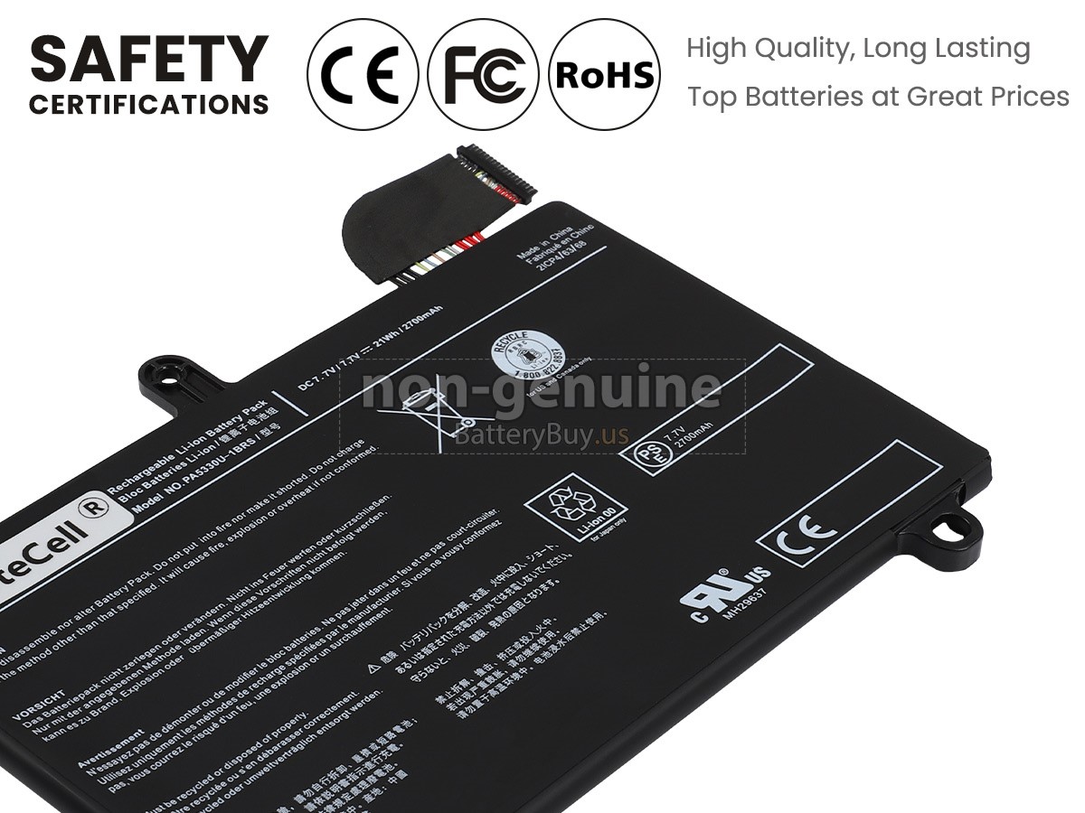 All our high-quality replacement batteries for Toshiba Dynabook G83 laptop come with a 1-year warranty. Warranty is applicable if the buyer has installed the battery properly in the device and has treated the battery correctly.